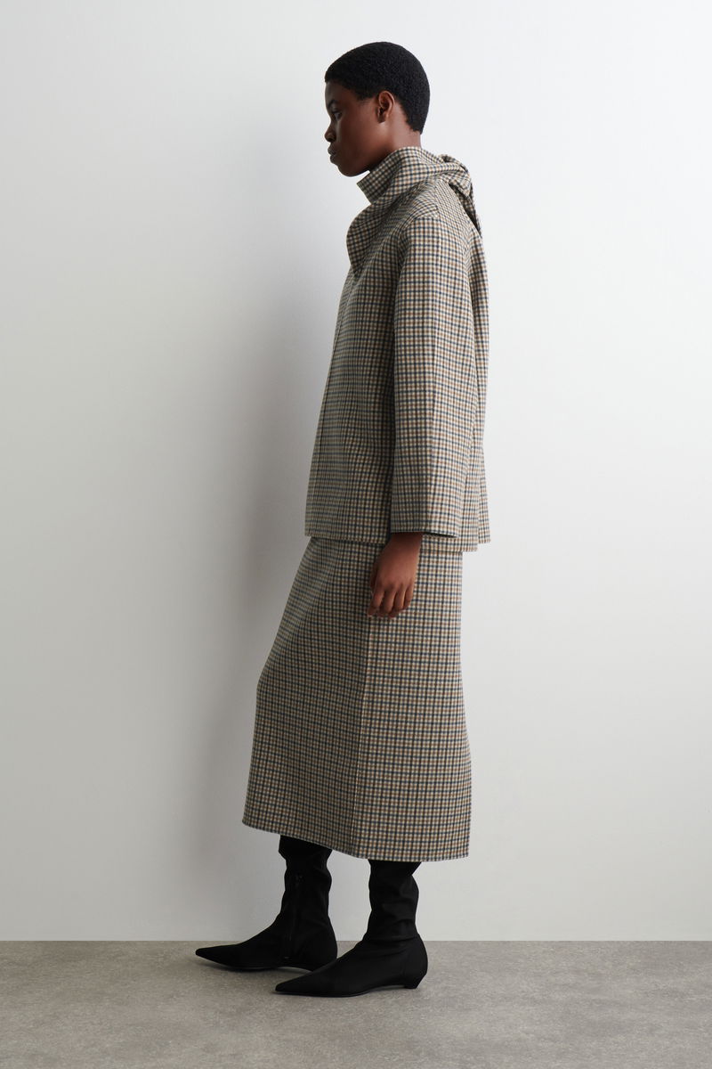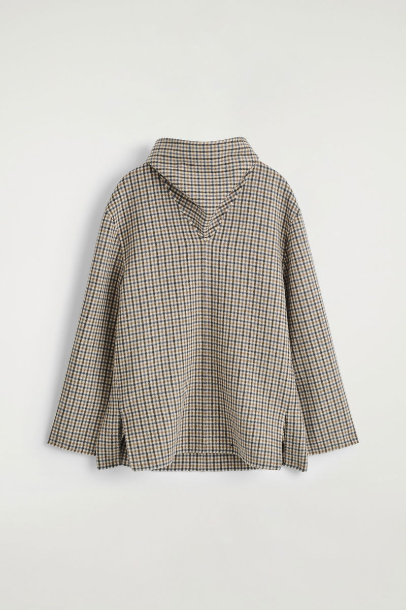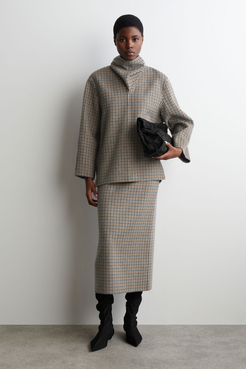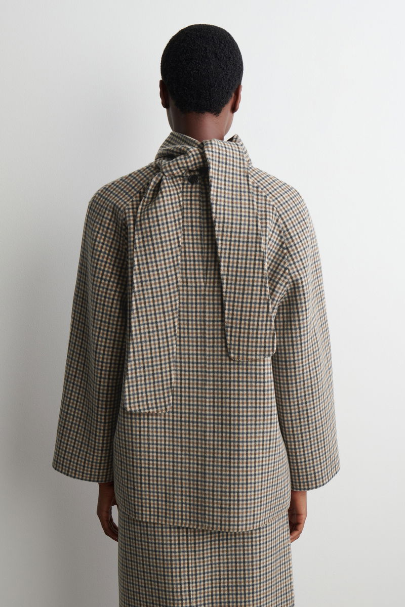 CHECKED DOUBLE-FACED WOOL SCARF BLOUSE