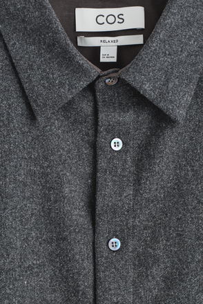 The COS menswear team have reinvented the classic tailored shirt for the upcoming season. Offered in a tonal-green palette, it's cut on our relaxed block and has a cotton-poplin collar and front panel, while the sleeves and back are made from contrasting cupro-blend twill. Wear it with wide-leg trousers and a pair of chunky loafers.