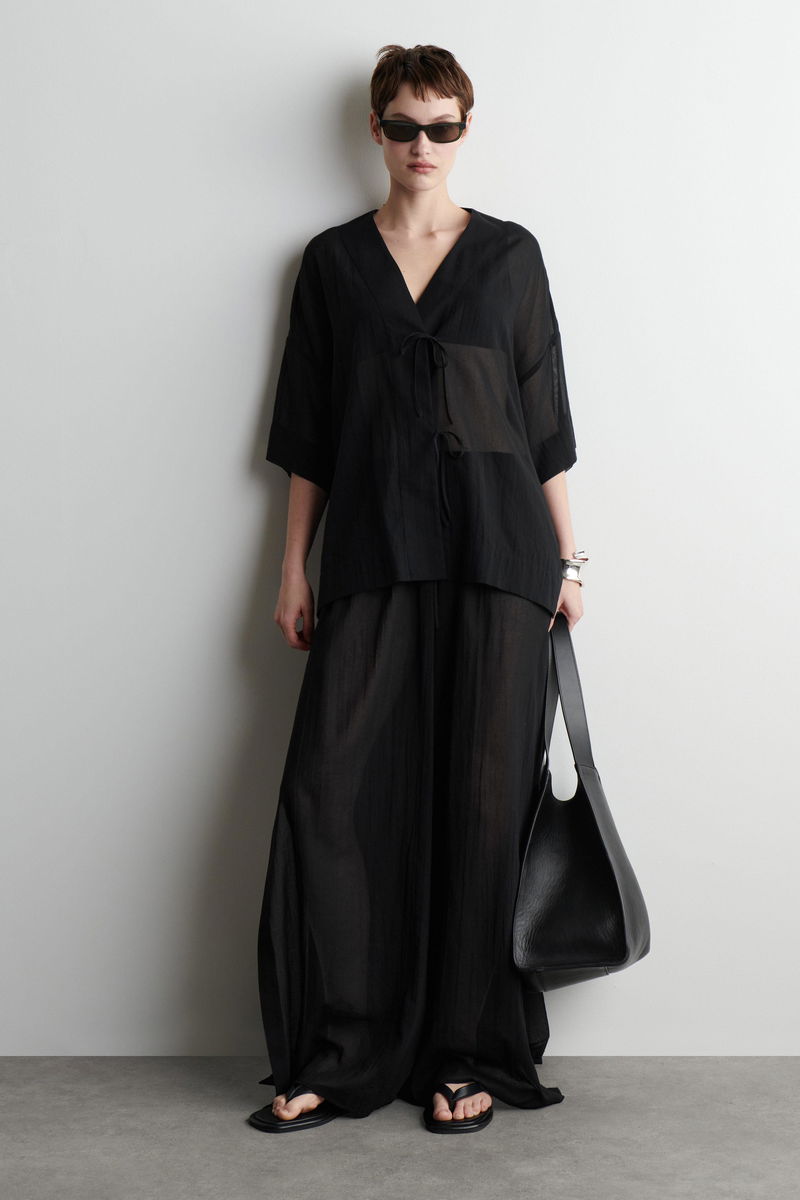 These crinkled trousers lend themselves to balmy days by the water. They're crafted from lightweight, airy cotton in a flowy silhouette and feature a drawstring waist and split wide legs that can be styled with swimwear underneath. Wear them as a set with the matching shirt.