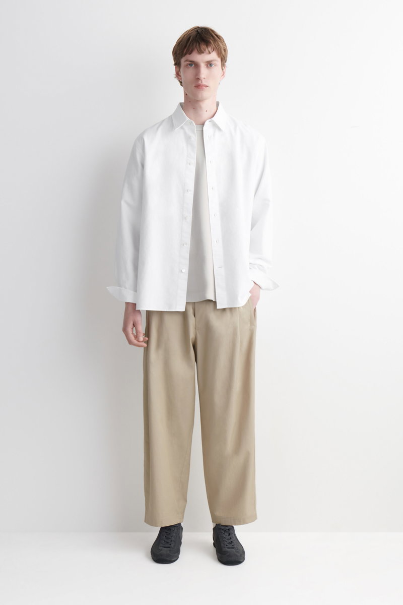 A modern essential, these trousers are cut in a relaxed, wide-leg shape that crops at the ankle. They're made from soft, durable cotton and feature an elasticated waist and welt pockets.