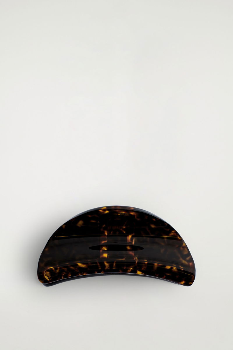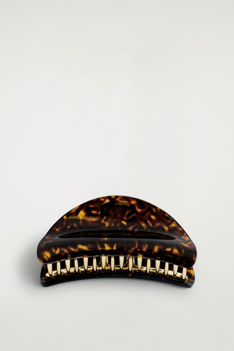Sculpted in a smooth, curved shape, this claw clip proposes a refined approach to accessorising. Gold-plated metal holds the hair in place, while the polished tortoiseshell-effect tone is easy to style.