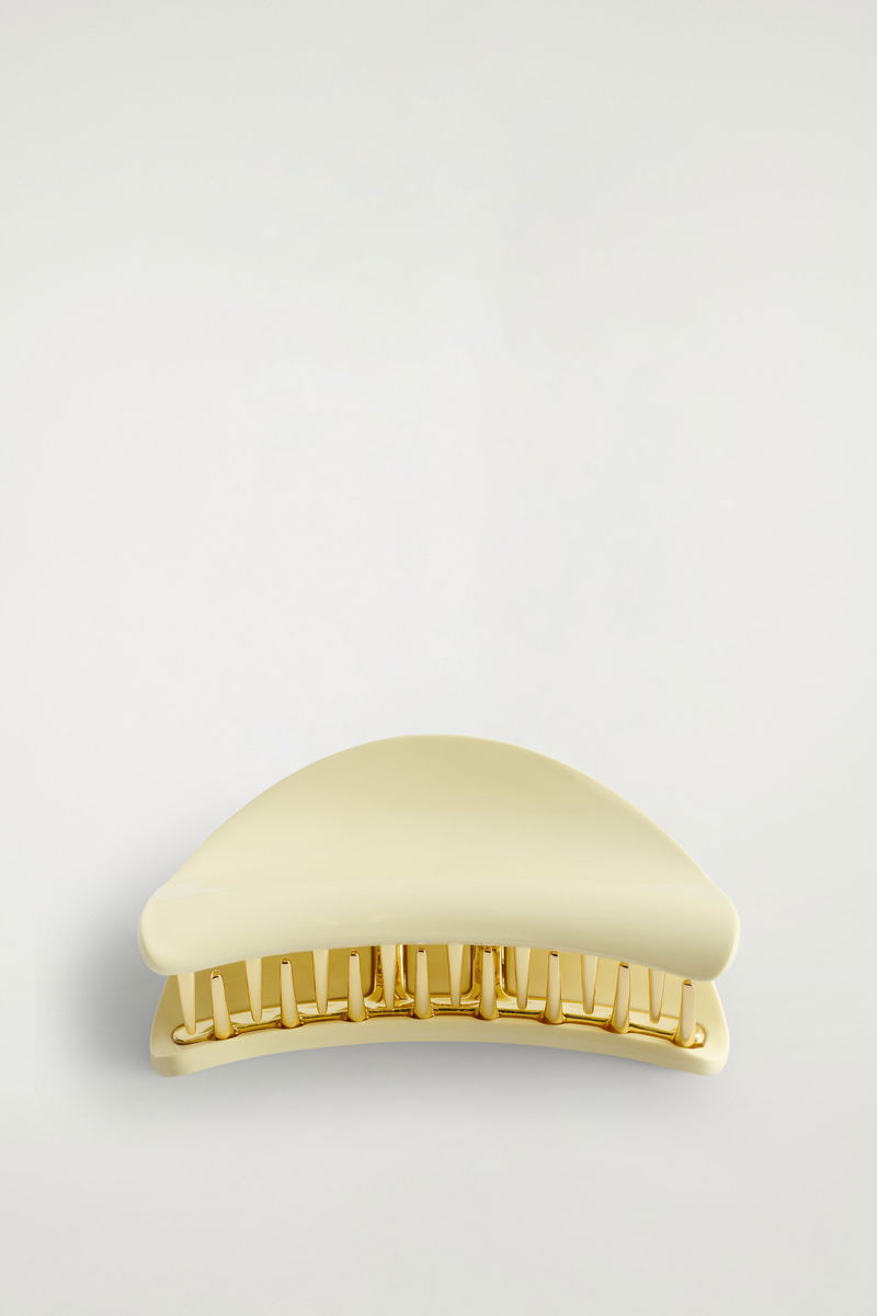 Sculpted in a smooth, curved shape, this claw clip proposes a refined approach to accessorising. Gold-plated metal holds the hair in place, while the polished tortoiseshell-effect tone is easy to style.