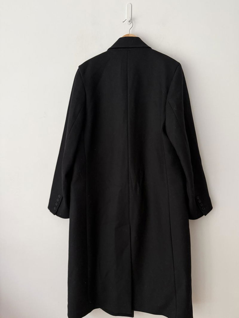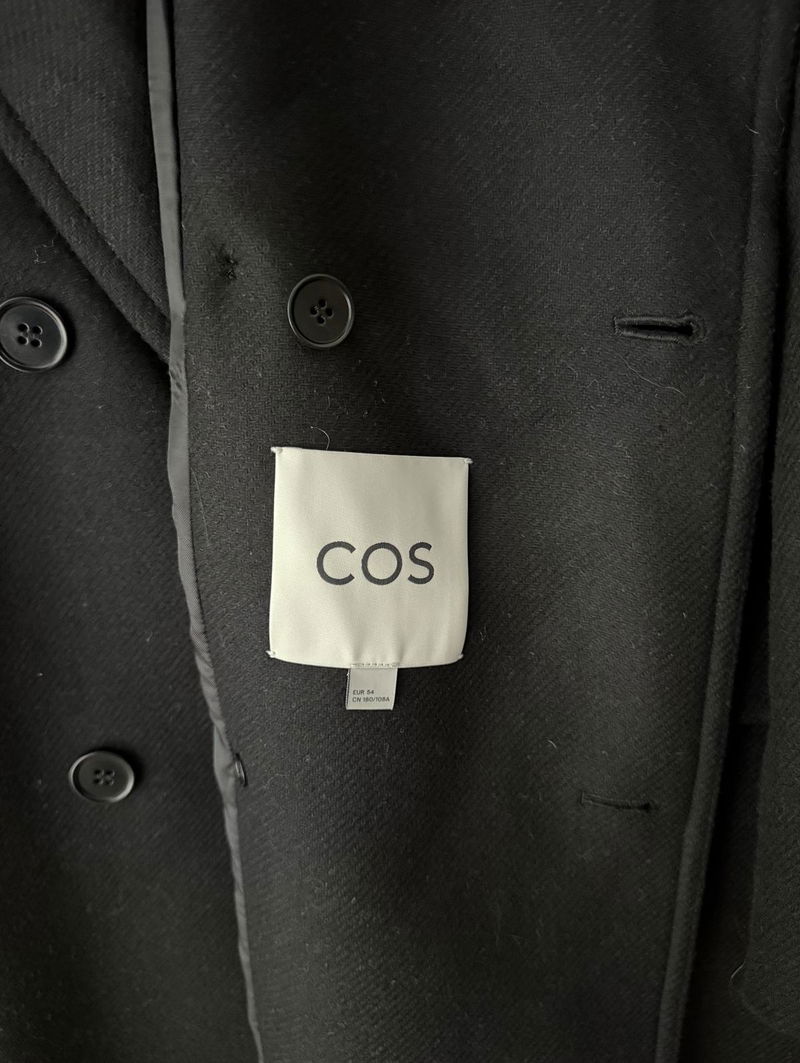 The COS menswear collection is led by perfected wardrobe classics like the double-breasted coat. Offered in timeless black, this piece is crafted from quality wool, chosen for its luxuriously soft handle and natural warmth. It's cut in a relaxed shape and finished with tailoring-inspired details, such as the welt pockets and vent at the back.