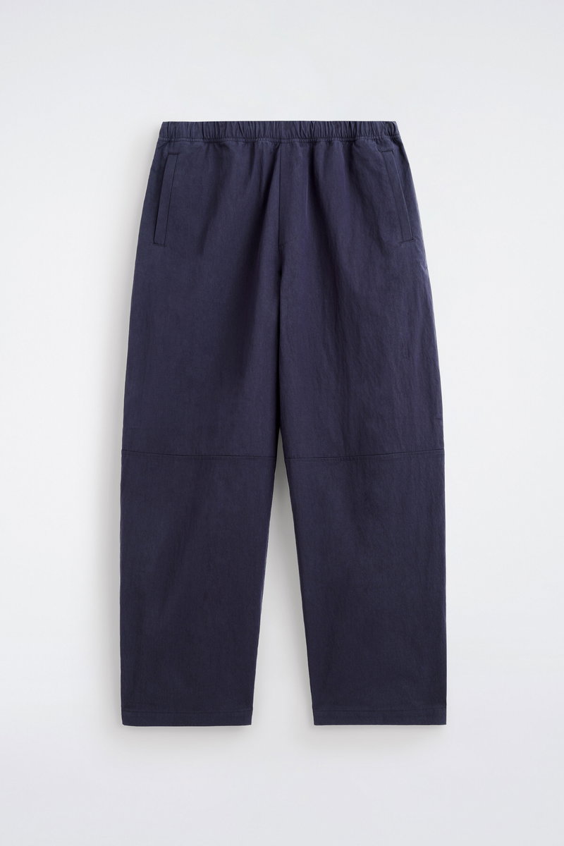 ELASTICATED RELAXED-FIT BARREL-LEG TROUSERS