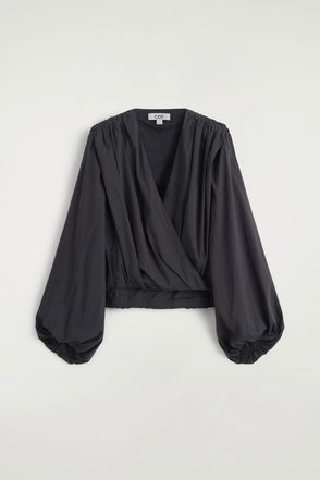 This season's eveningwear collection is distilled through elegant silhouettes and a considered colour palette. Offered in subdued ecru, this blouse is made from delicate layers of organza that twist into a wrap-over shape and detailed with soft shoulders, elasticated puffed sleeves and a pleated hem.