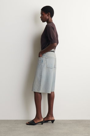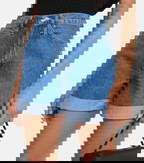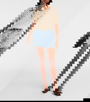 Few pieces signal summer quite like a pair of denim shorts. Offered in a mid-blue hue, this style is cut in a relaxed shape with a high waist, five pockets and subtly flared legs. They're finished with metal rivets.