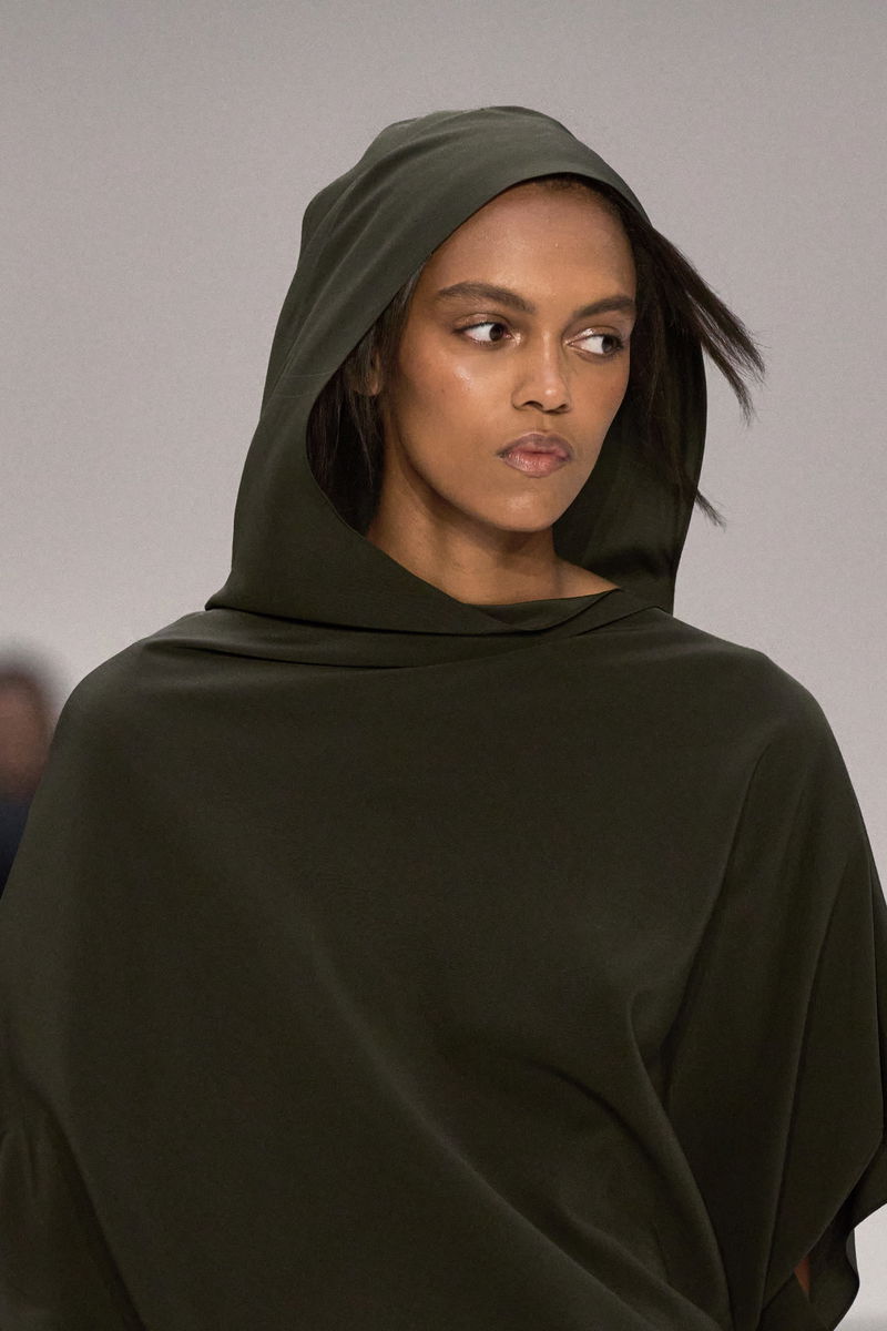 Autumn Winter 2025 takes the modern wardrobe to new heights: the epitome of quiet confidence. Relaxed yet refined, this hooded top is expertly crafted from luxuriously soft mulberry silk crepe de chine in a rich espresso tone. This beautifully draped piece is designed with asymmetric sleeves that twist into a voluminous silhouette and finished with delicate pin-hem detailing. Style it with the matching skirt for a tone-on-tone look.