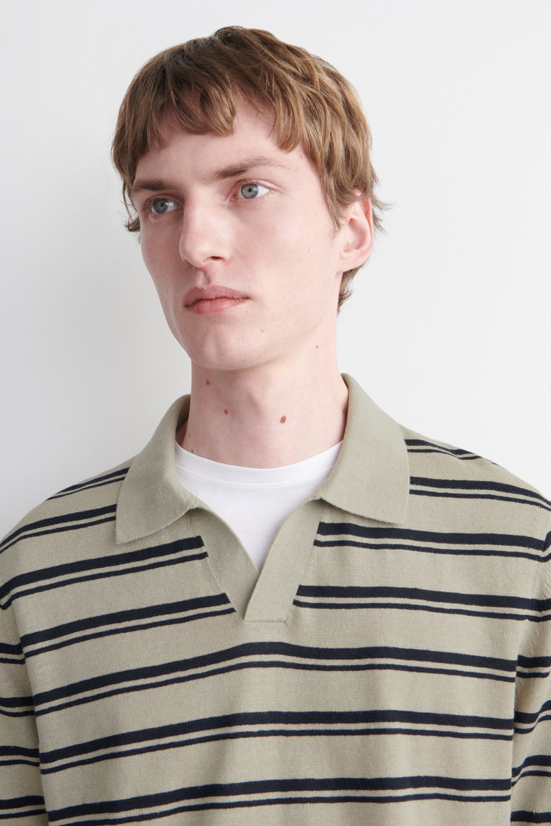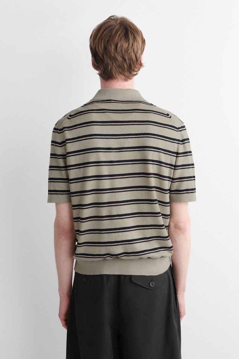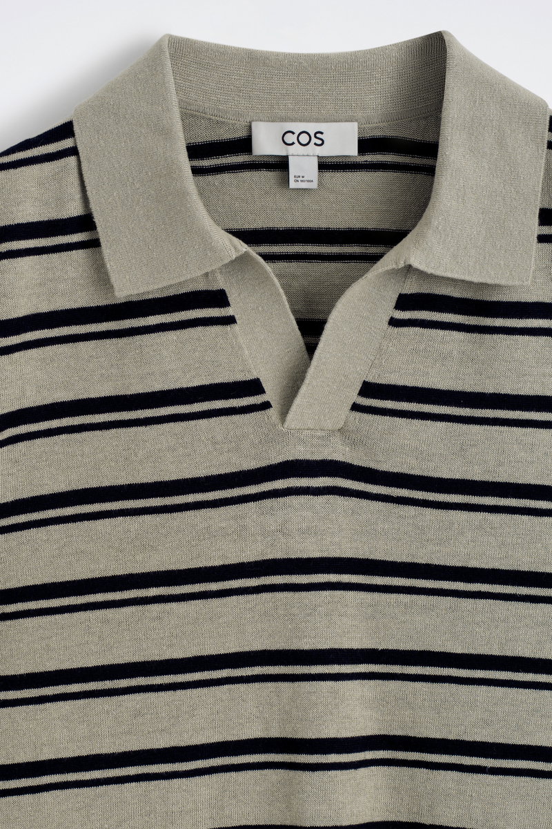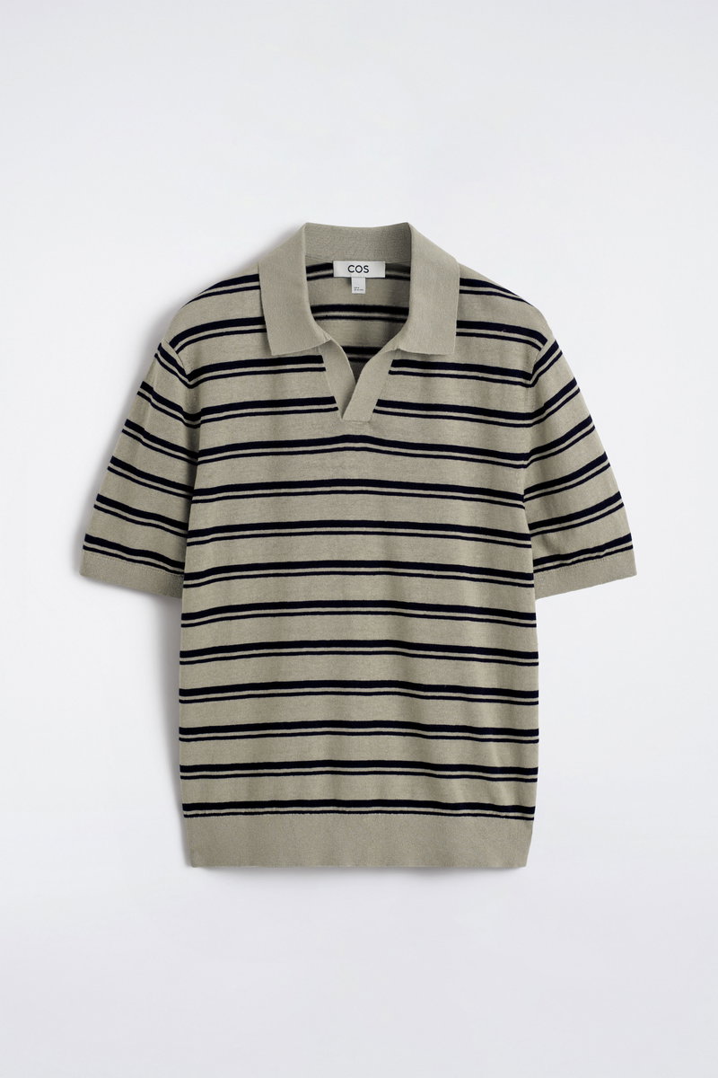 This season, the classic polo shirt is rendered in a naturally breathable linen and cotton blend that's knitted to create a subtle mélange effect. It's cut in a relaxed shape and designed with a laid-back open collar.