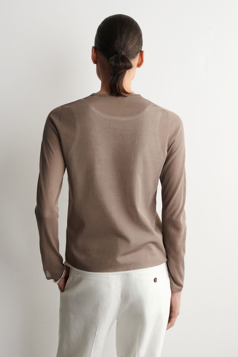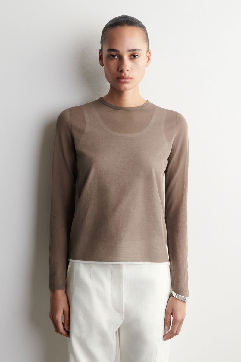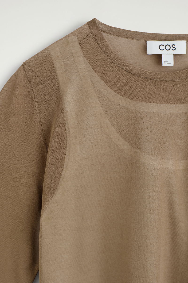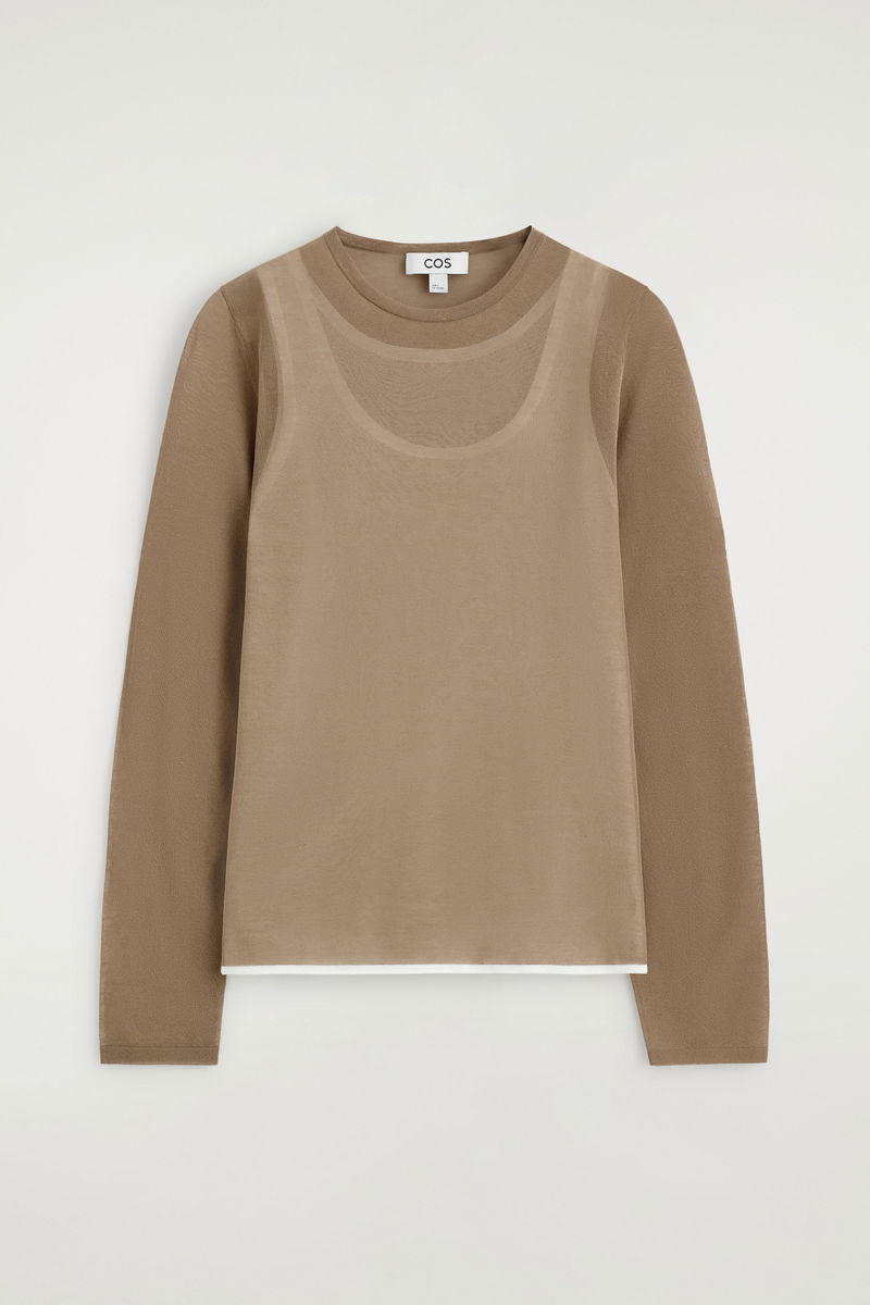The COS collection spotlights wardrobe signatures renewed with subversive details. Knitted from a soft cotton blend, this modern brown top is underpinned by a contrasting white tank that's visible at the hem.