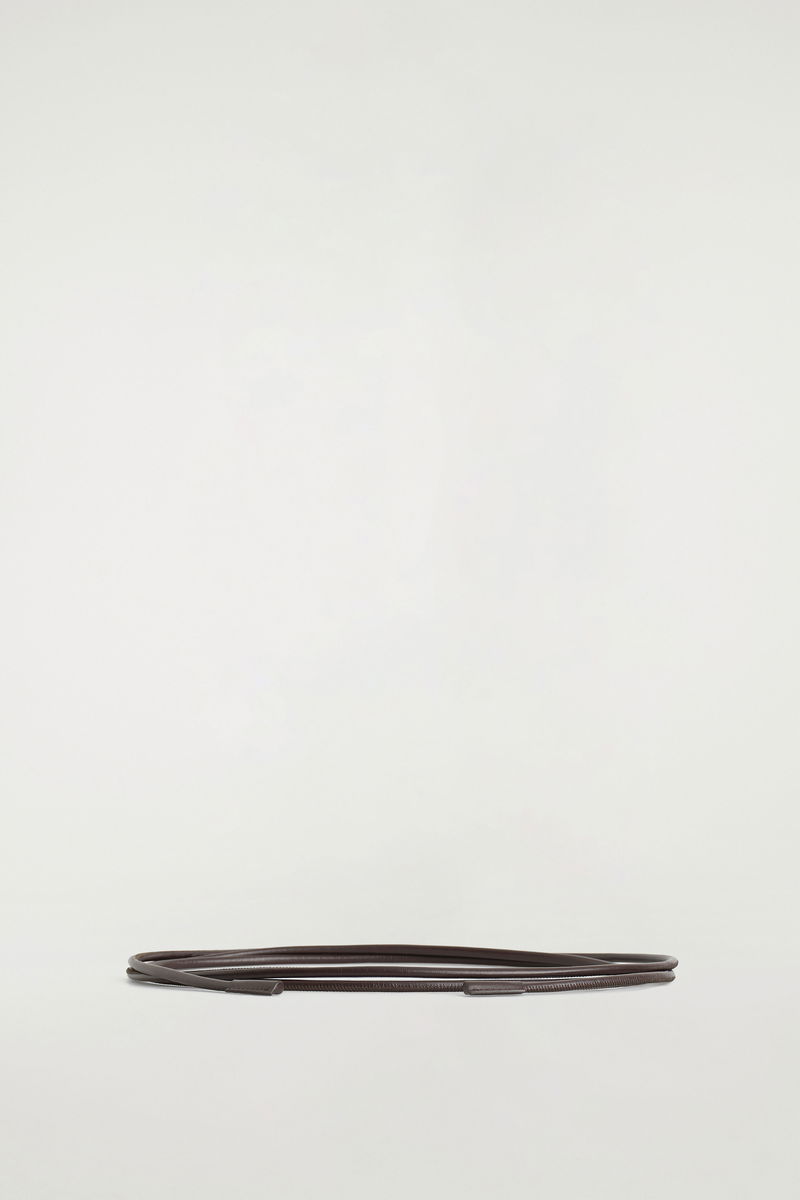 The COS accessories collection is told through simple yet impactful silhouettes. Designed to wrap around the waist, this belt is crafted from supple leather in a rich brown tone and carefully stitched to create a tubular, rope-like shape. Our stylists recommend cinching it over a dress or blazer.