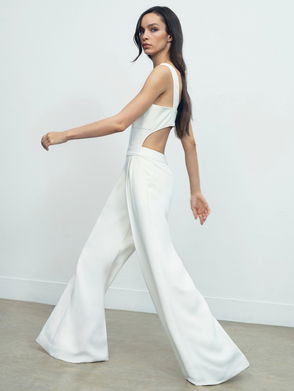 Welcome the season of dressing up with refined pieces like this wide-leg jumpsuit. Crafted from soft-sheen satin, it's shaped with a deep V-neck and suspended from narrow shoulder straps that cross over at the open back. Style it with a pair of statement earrings.