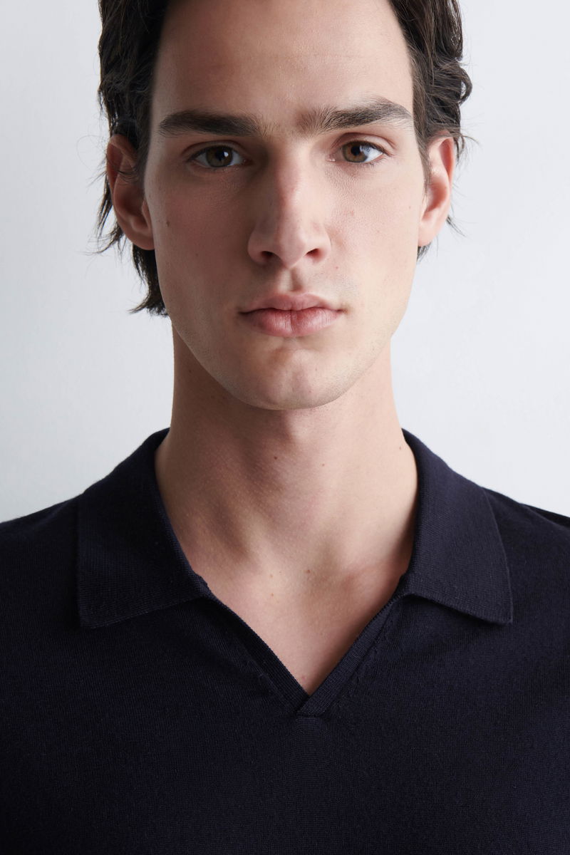 OPEN-COLLAR MERINO WOOL POLO SHIRT