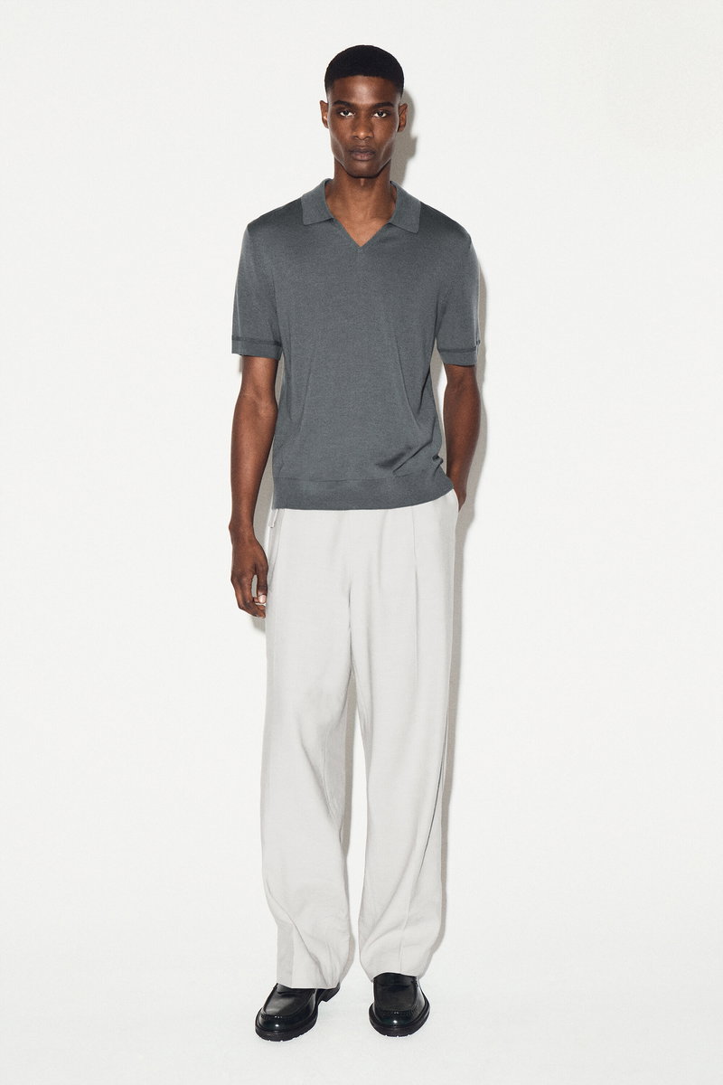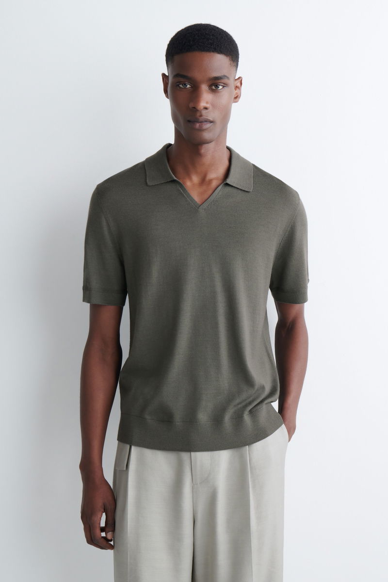 OPEN-COLLAR MERINO WOOL POLO SHIRT