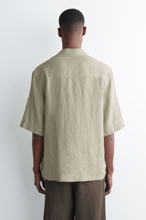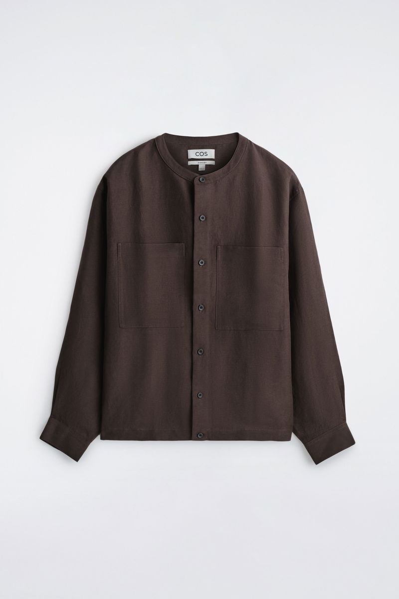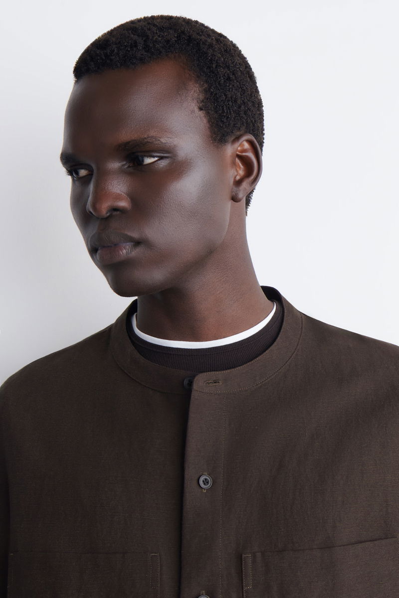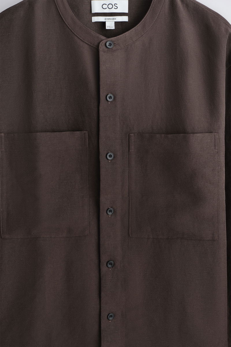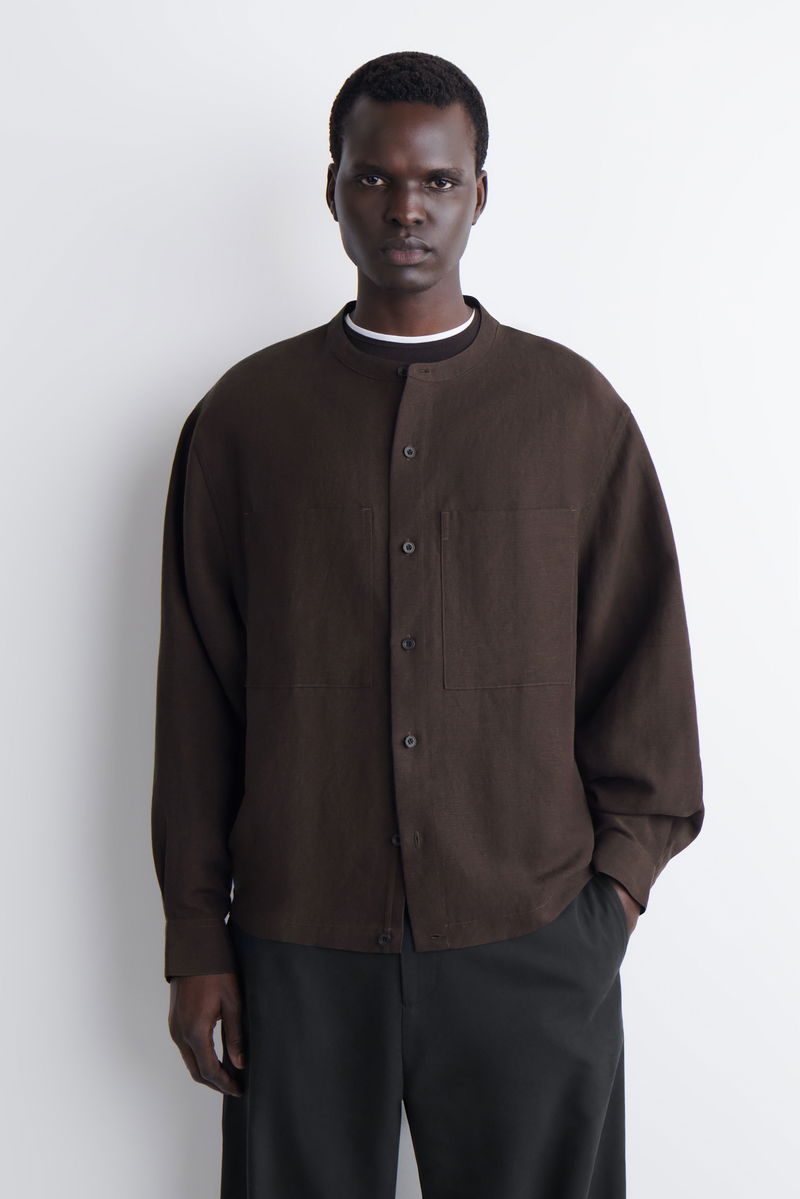 OVERSIZED GRANDAD-COLLAR LINEN SHIRT