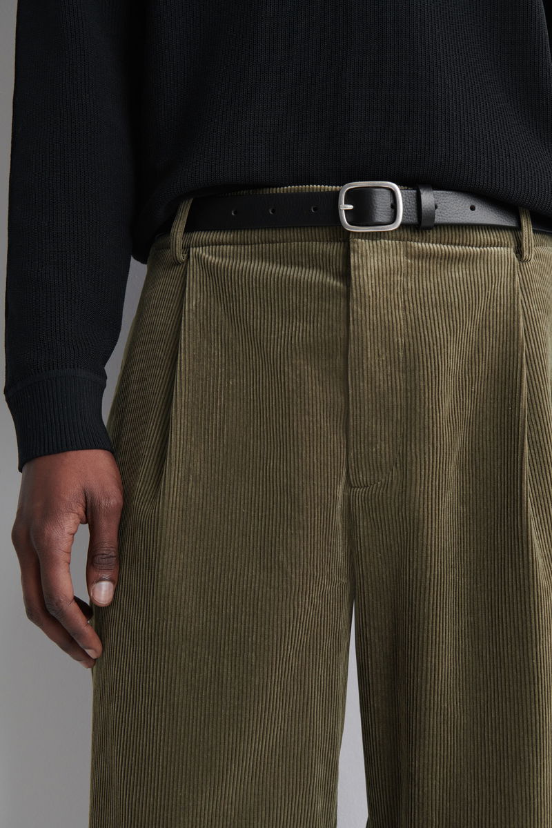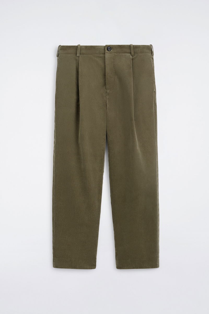 These modern trousers are made from tactile cotton-corduroy and come in a dark-khaki tone that styles easily with other neutrals.