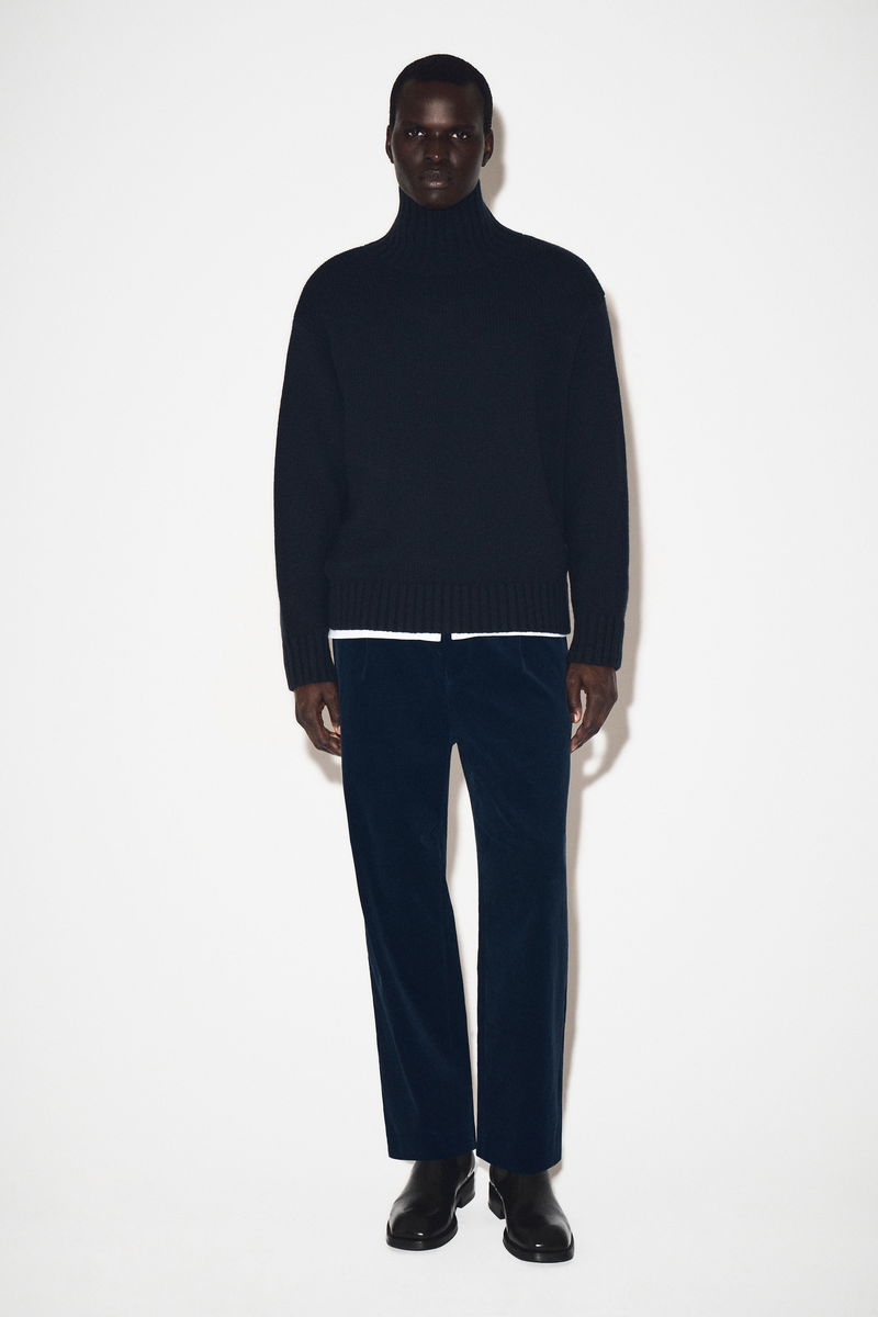 These modern trousers are made from tactile cotton-corduroy and come in a navy tone that styles easily with other neutrals. They're cut in a relaxed, straight-leg shape and feature belt loops, pleated detailing and several practical pockets.