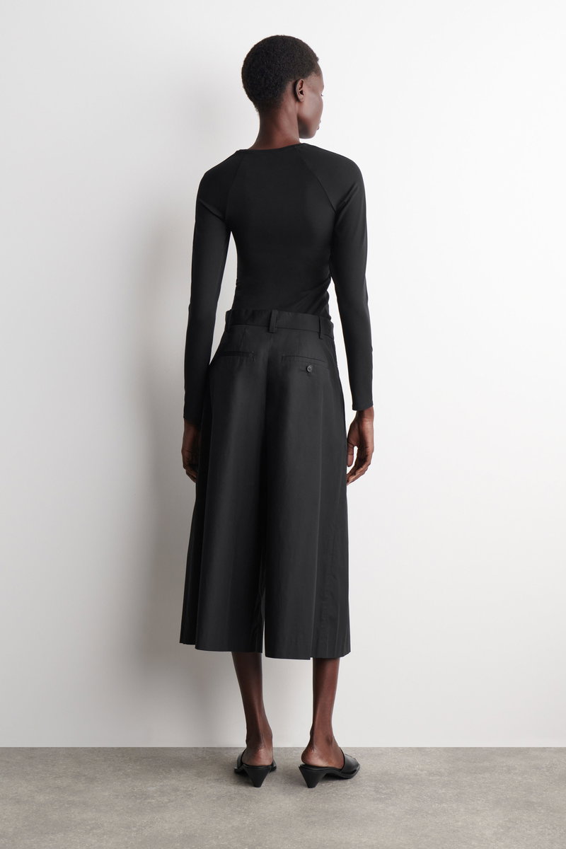 Designed to fall below the knee, these modern culottes are crafted from 100% cotton for a crisp yet lightweight handle and designed with sharp pleats for a relaxed silhouette. Style them with a classic tank.