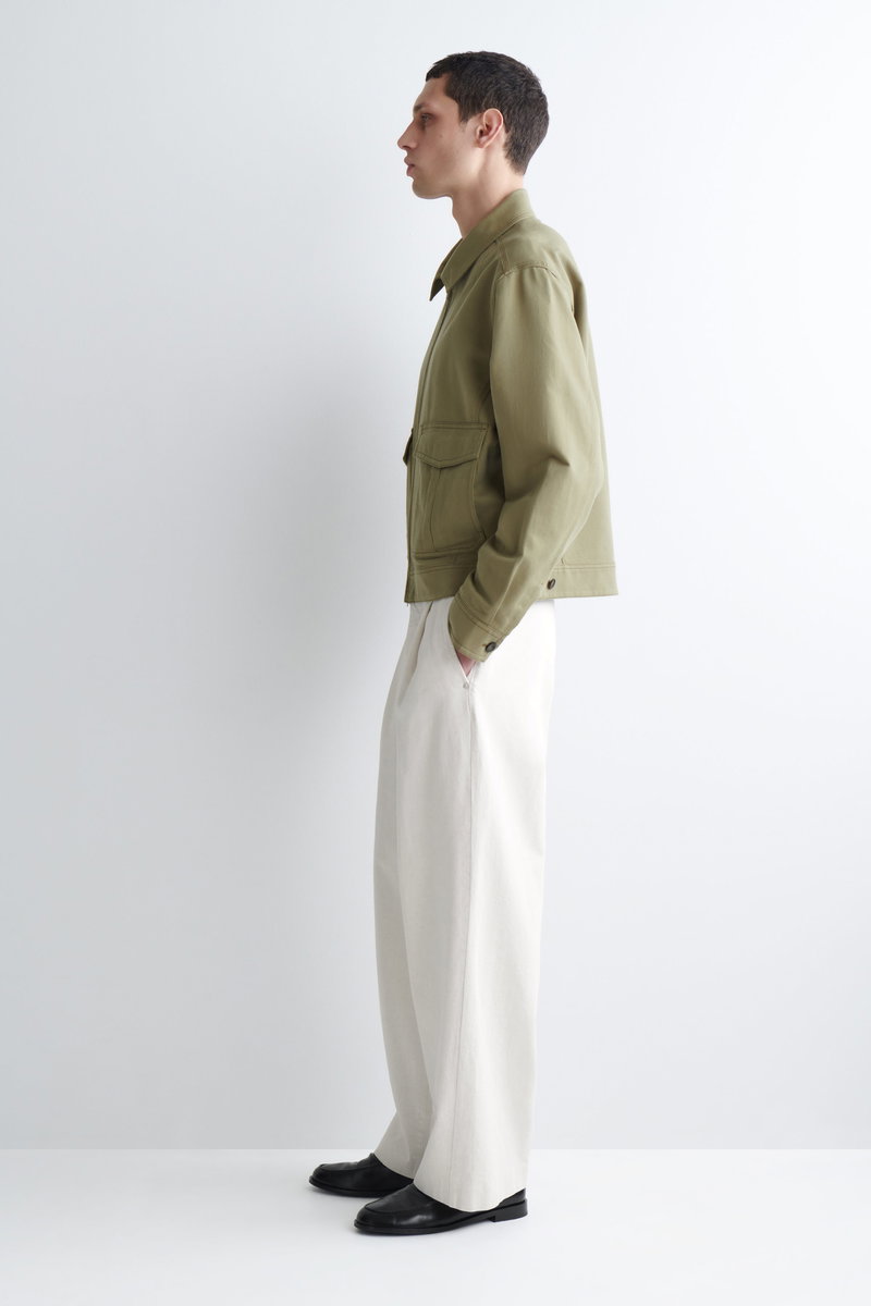 PLEATED RELAXED-FIT WIDE-LEG DENIM TROUSERS
