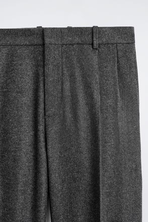These modern trousers marry the formality of tailoring with the ease of denim. Made from an organic cotton and linen blend, they are cut in a relaxed shape with wide legs and full-length hems that pool over your shoes. A utility-inspired shank button fastens at the waistband, while slanted pockets detail the front.