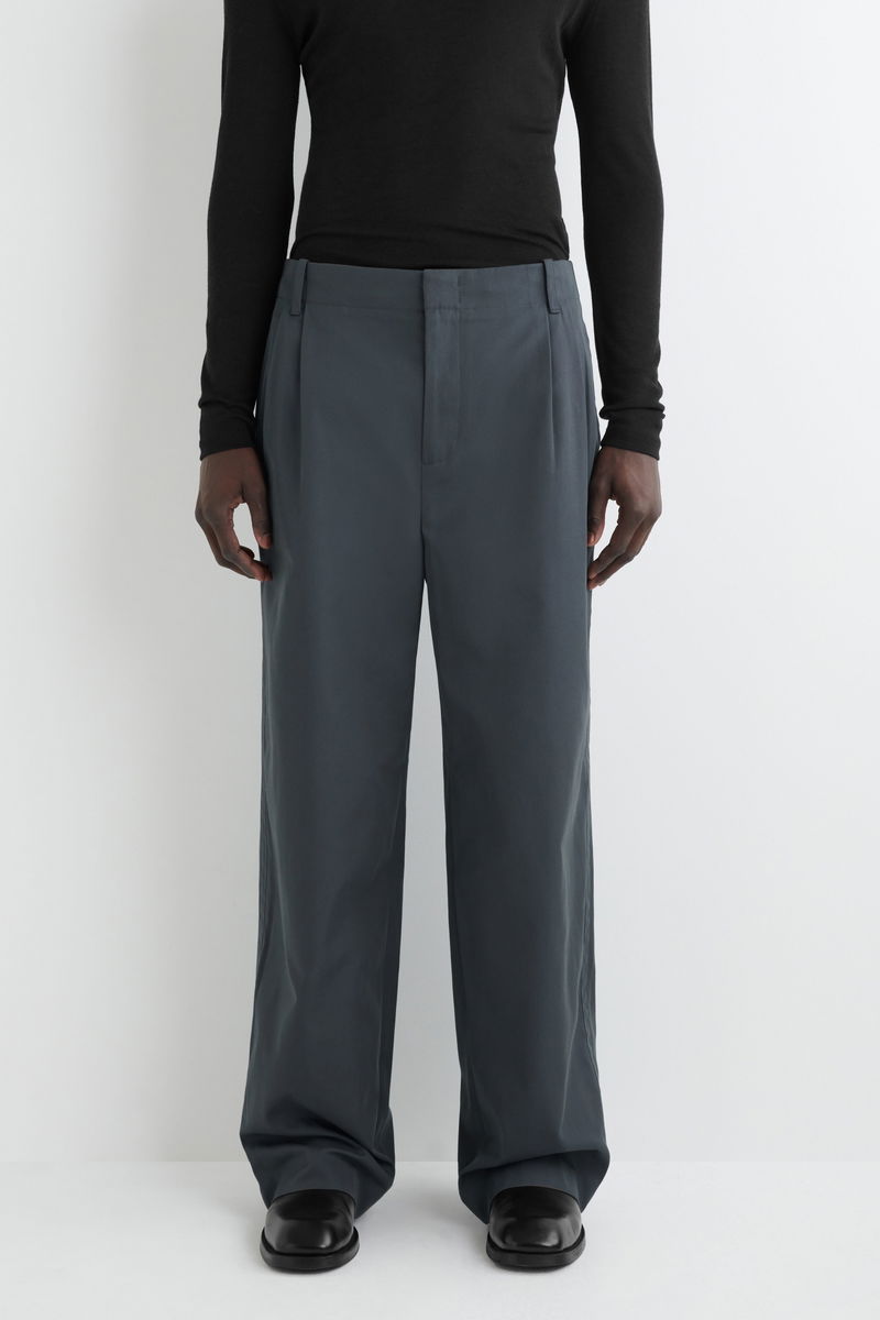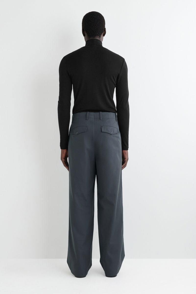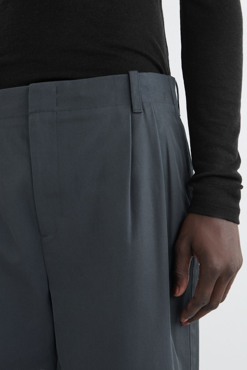 The pleated trouser is a pillar of the COS wardrobe. Crafted from soft cotton-twill, this pair is tailored in a relaxed, wide-leg shape and has a utility-inspired flap pocket and a concealed front closure. Style them with a classic tee.