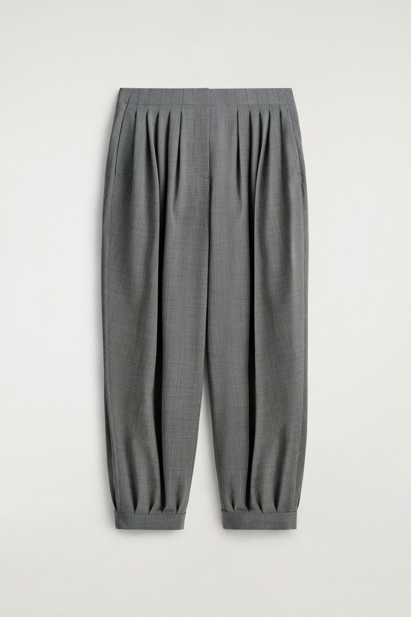 Unexpected silhouettes lead this season's tailoring collection. Made from richly tactile wool-blend twill, these trousers are shaped with wide balloon legs defined by fitted cuffs and sharp pleats that fall from the waistband.