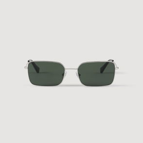 A modern take on retro pairs, these sunglasses are designed with silver-tone wire frames and rectangular lenses tinted a Havana-green hue. Hang them from your shirt when the sun draws in.