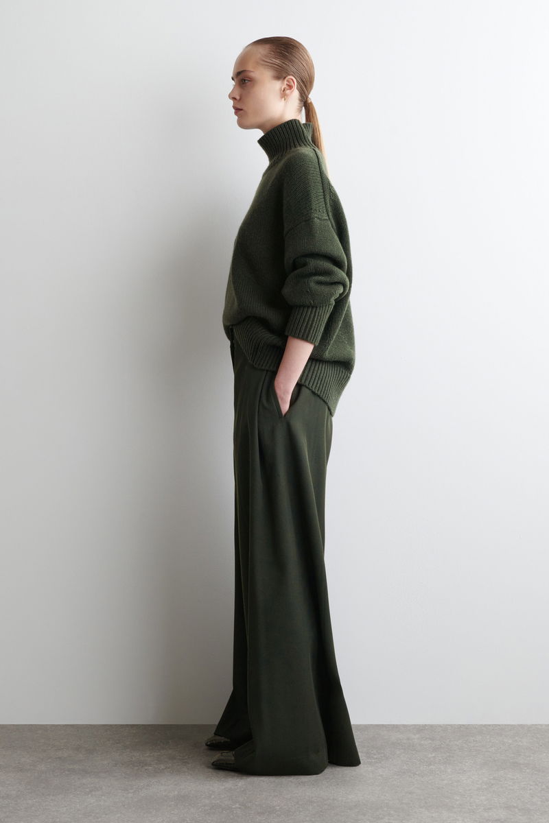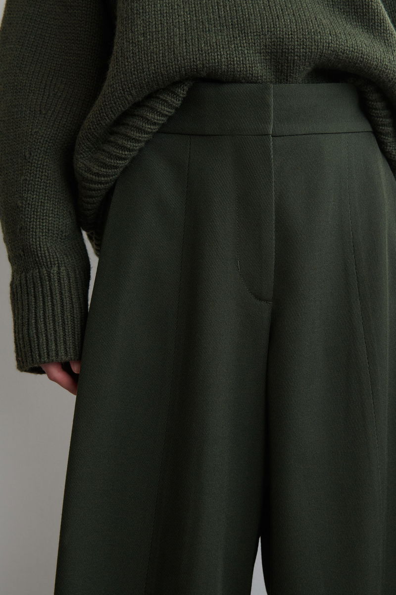 Rendered in a light-cappuccino hue, these trousers are crafted from wool-blend twill and cut with pleated, wide legs that break at the shoes. The welt pockets nod to suiting codes, while the clean waistband adjusts to create a bespoke fit.