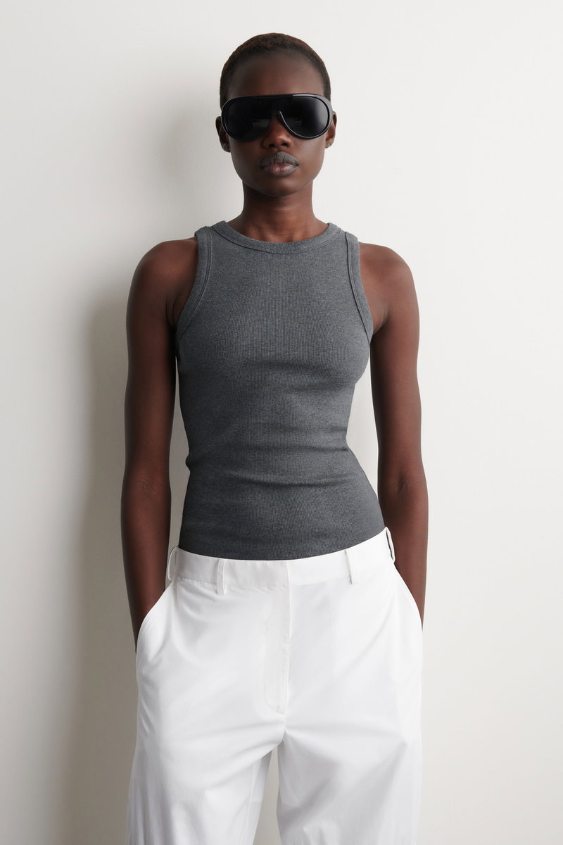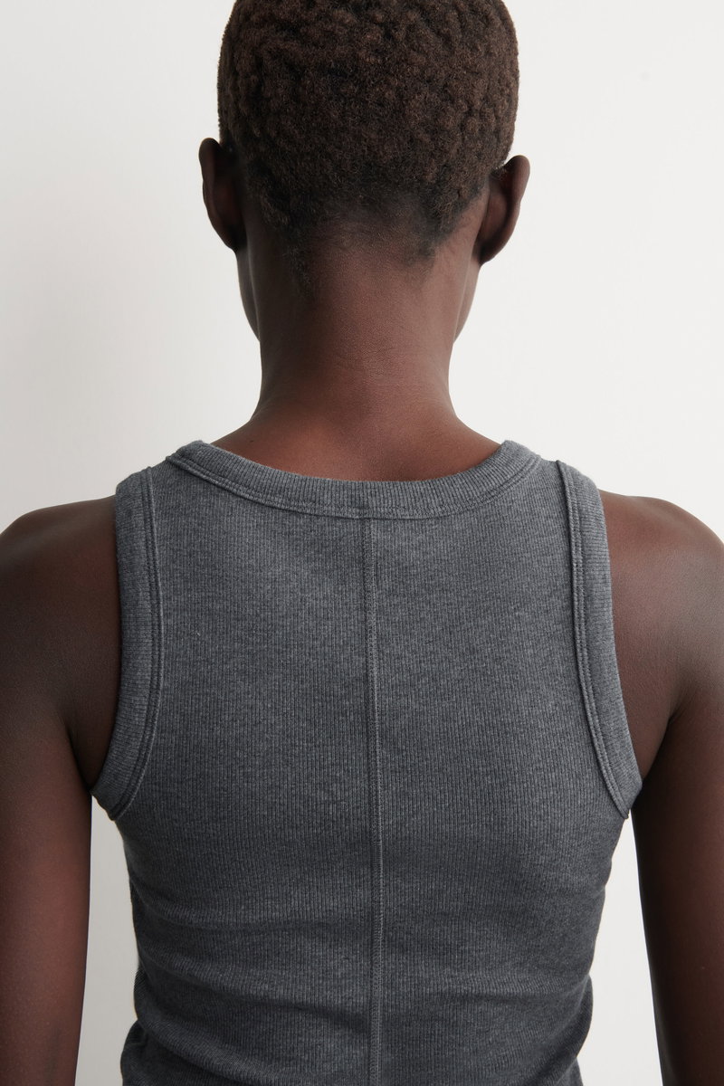 The classic tank top is a pillar of the capsule wardrobe. Cut in a relaxed silhouette, this piece has a rounded neckline and is crafted from exceptionally soft cotton-jersey that's finely ribbed for tactility.