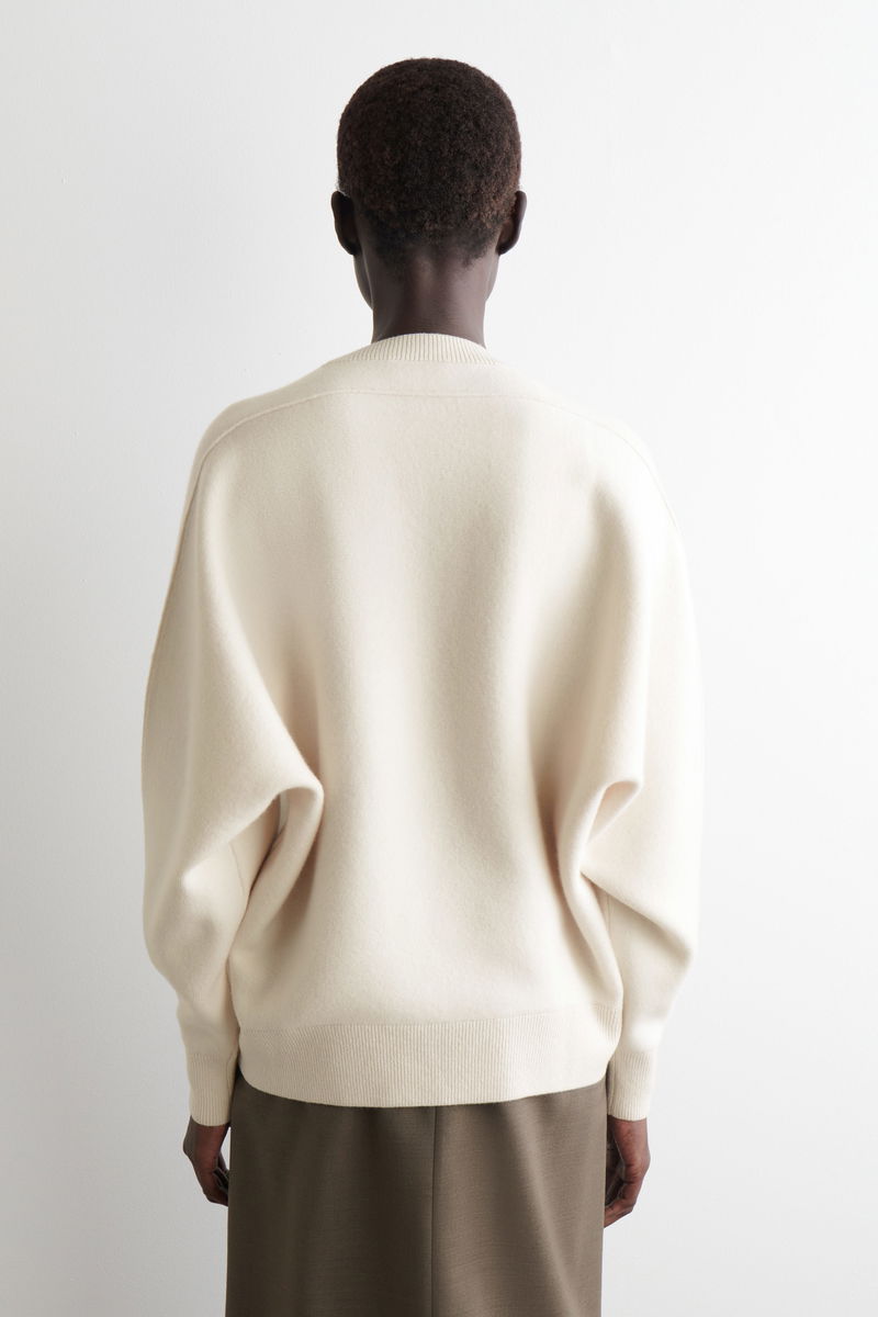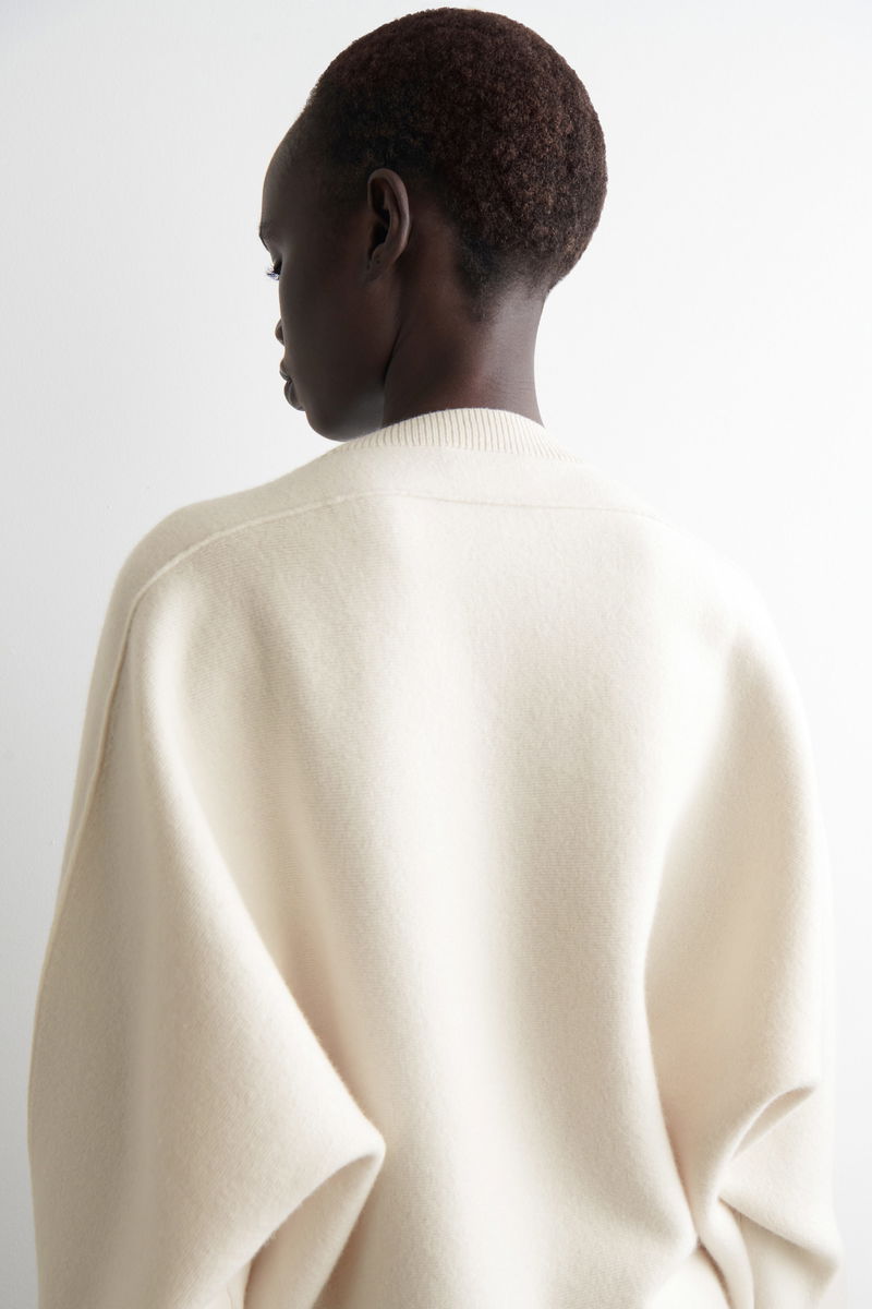 Sculptural in shape, this camel-hued jumper is knitted from an RWS wool blend that's double-faced for a premium hand feel. It's cut in a relaxed silhouette and has ribbed trims and rounded, curved sleeves.