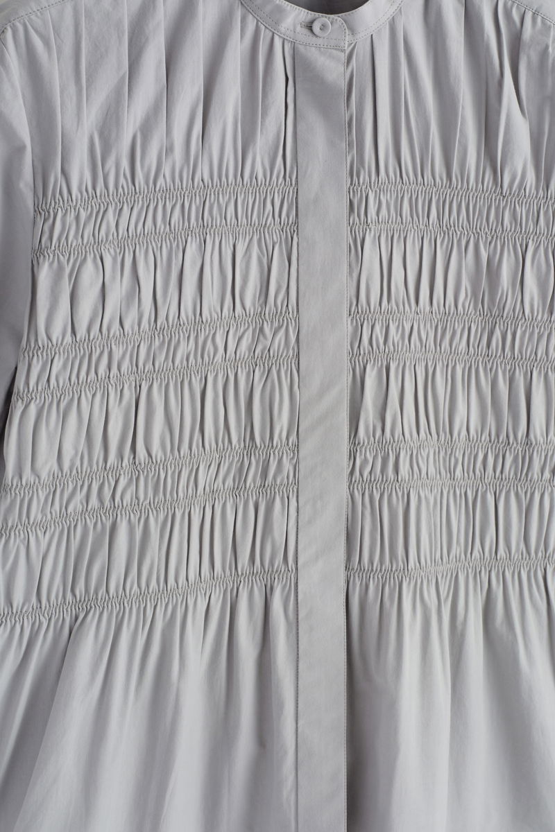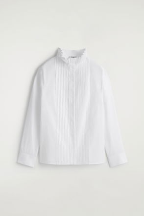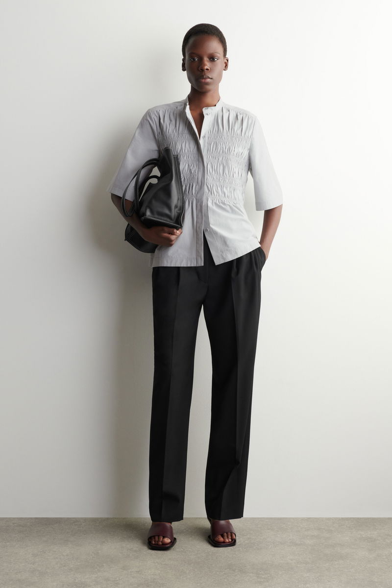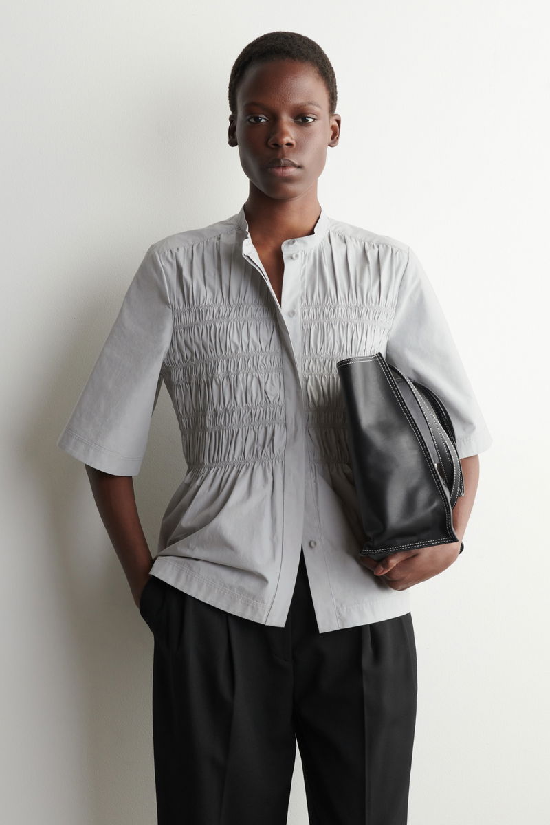 This season, the womenswear team lend a refreshed take on wardrobe classics. This refined blouse is crafted from soft cotton and designed with intricate pleating that gathers at the front. Layer it under a cardigan in the transitional months.
