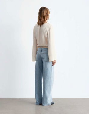 For Autumn Winter 2025, the womenswear designers reimagine classic shirting with a modern femininity. Crafted from lustrous mulberry silk, it's rendered in a rich chestnut tone and features a tonal detachable scarf that's secured by a concealed loop at the nape.