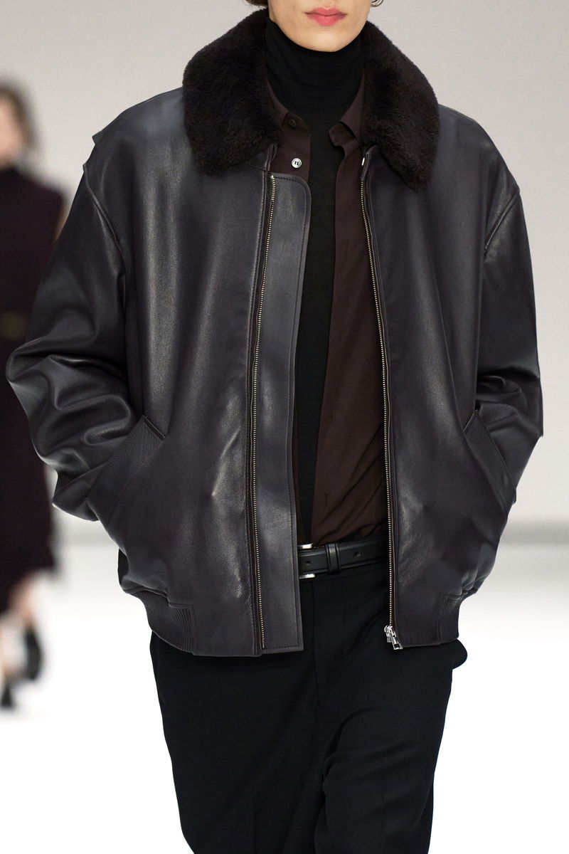Autumn Winter 2025 takes the modern wardrobe to new heights: the epitome of quiet confidence. This refined jacket is testament to the COS designers' rigorous approach to quality and craft. Tanned a rich espresso tone, it's crafted from supple chrome-free lambskin that will earn a distinctive patina over time and features a quilted lining, ribbed leather trims and a tactile shearling collar that can be removed for versatile styling.