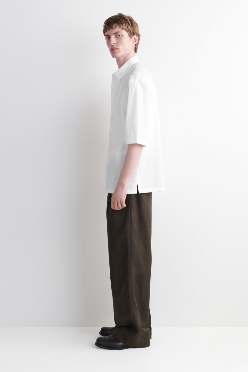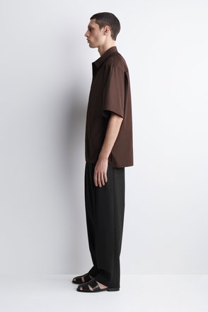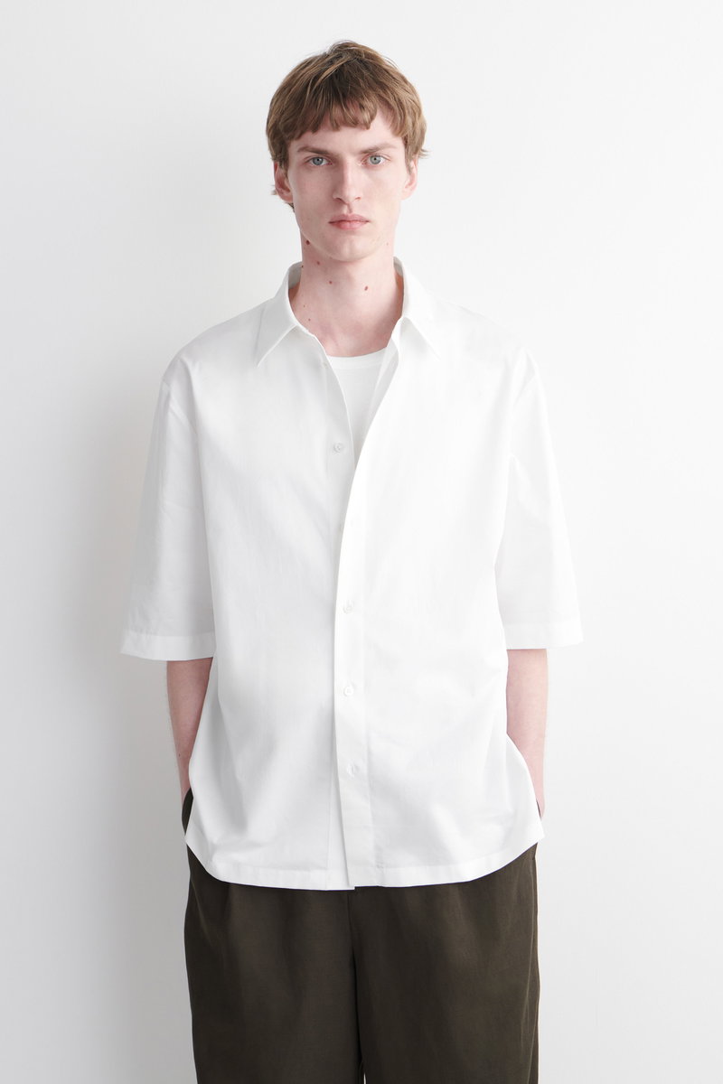 Cut in a laid-back shape, this short-sleeved shirt is made from breathable cotton in a versatile navy tone. It's designed with details from classic tailoring, from the pointed collar and split hem to the box pleat at the back.