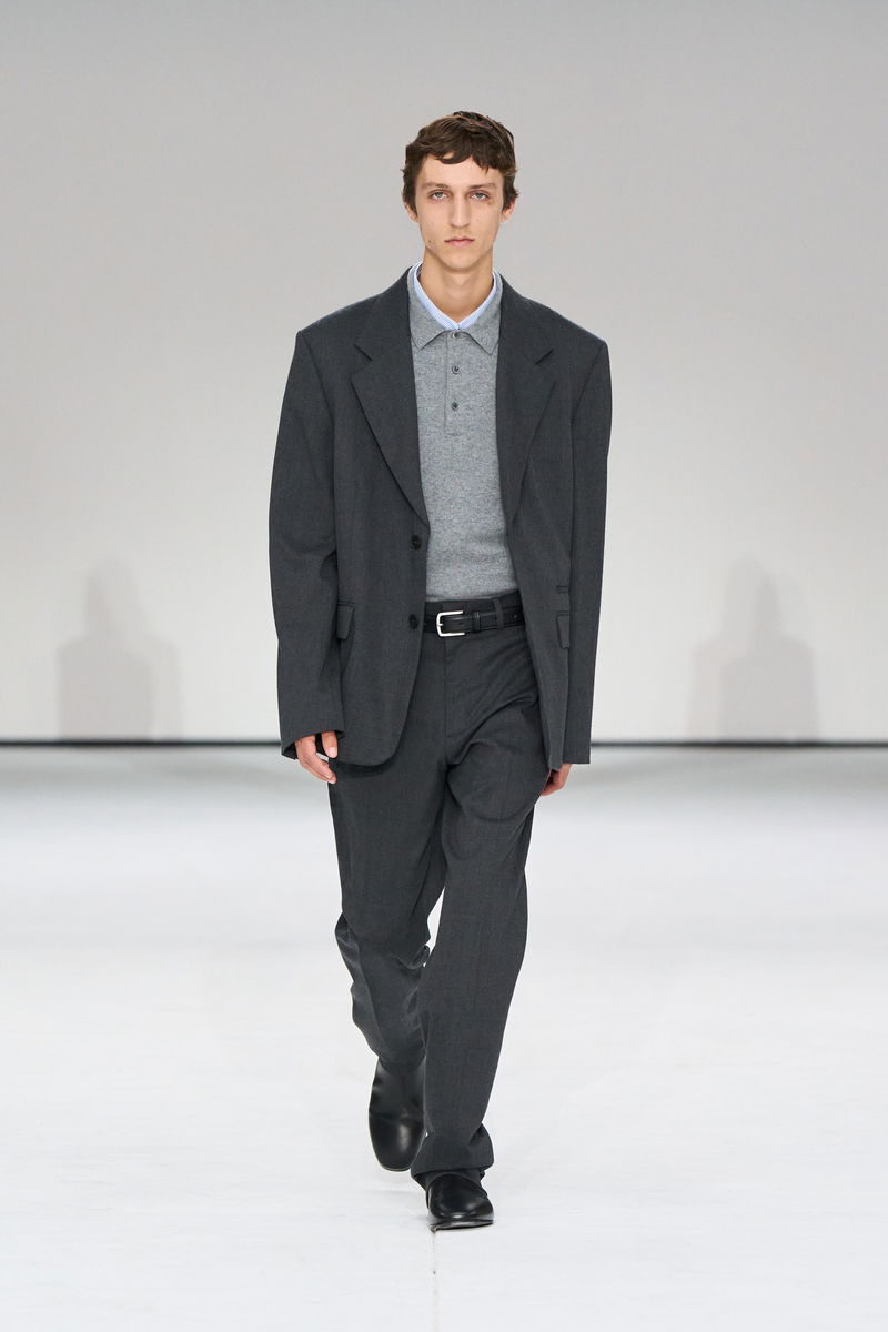 Autumn Winter 2025 takes the modern wardrobe to new heights: the epitome of quiet confidence. This refined blazer is crafted from a wool-blend suiting cloth, specially selected for its light handle and rich texture. It's precisely tailored in a single-breasted shape and designed with structured shoulders, flap pockets and a grosgrain hanger loop – a house signature. Style it with the matching trousers for a fresh take on the classic suit.