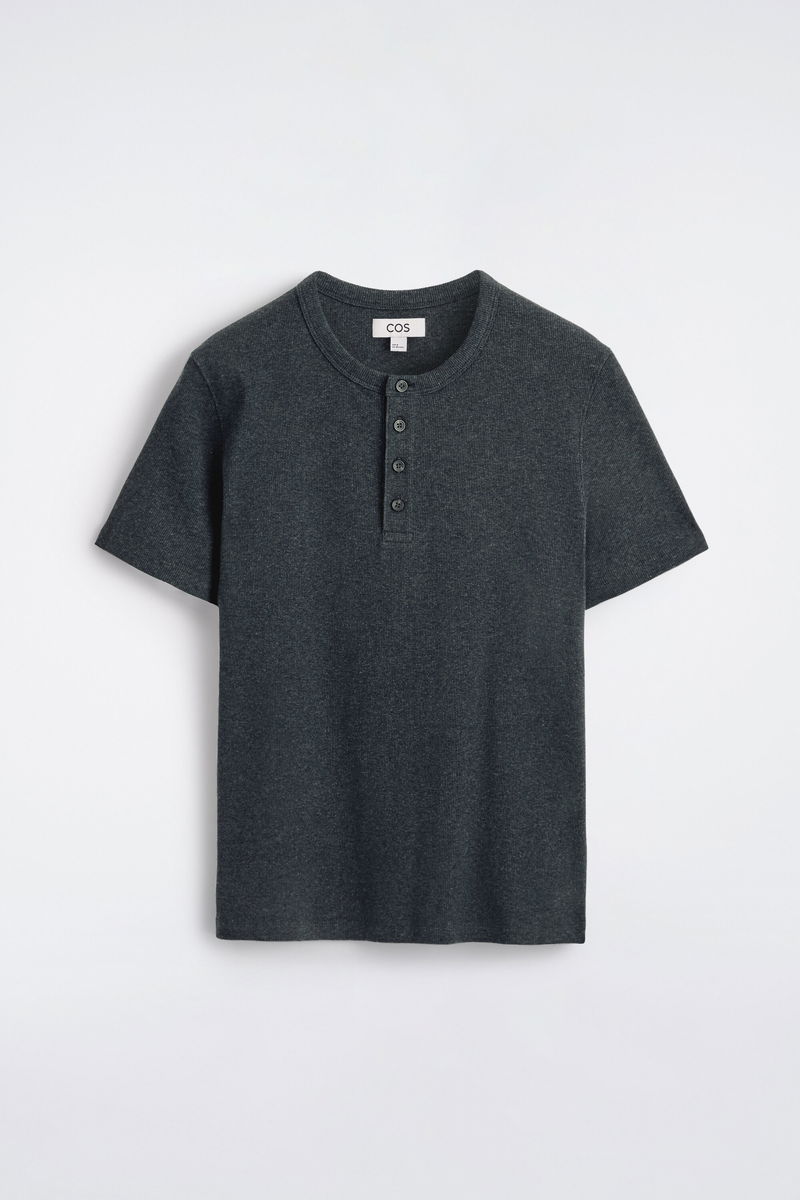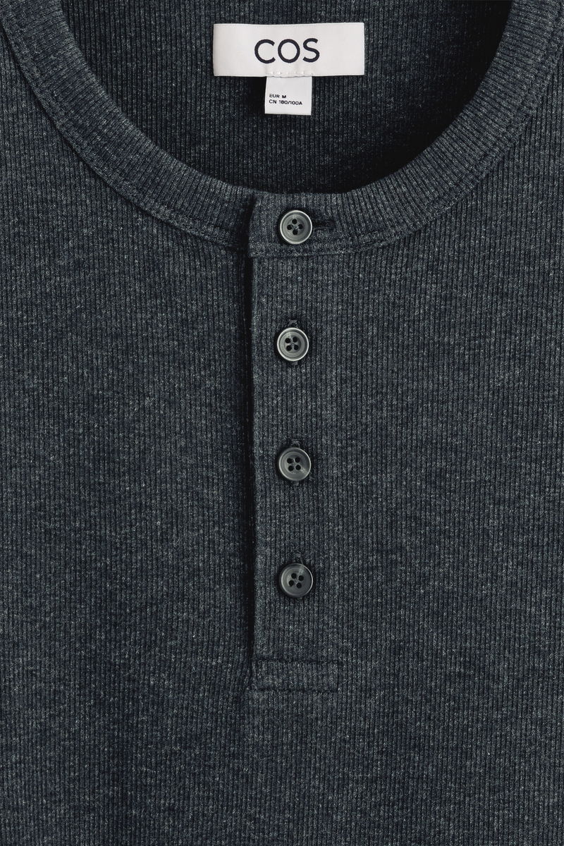 SLIM-FIT RIBBED HENLEY T-SHIRT