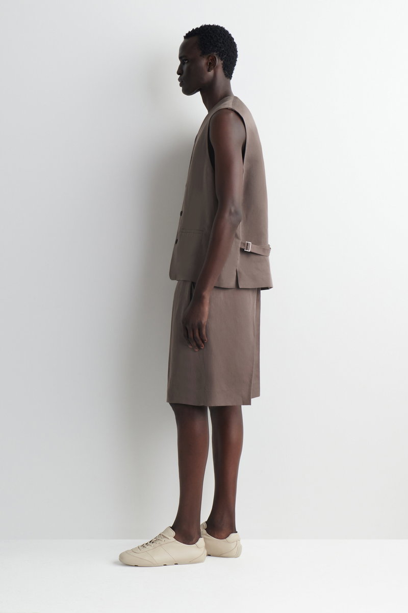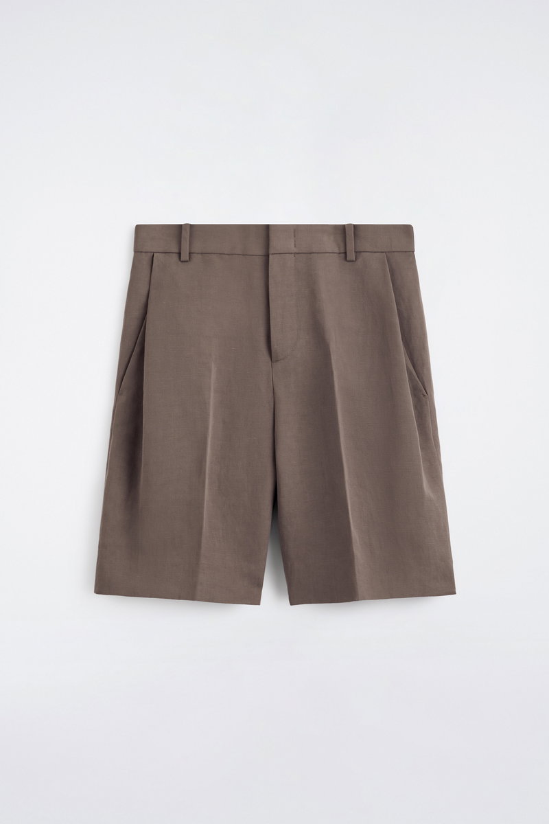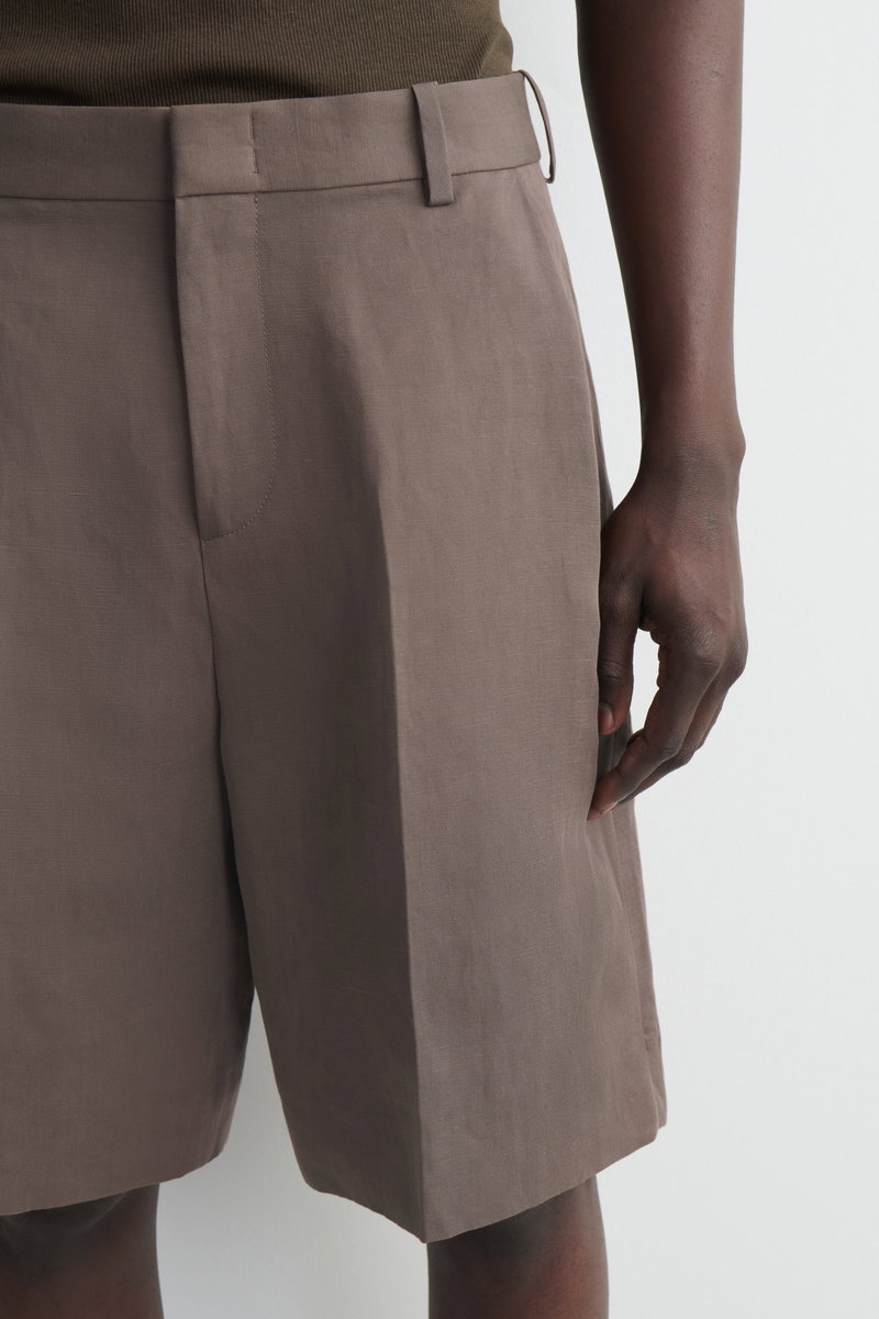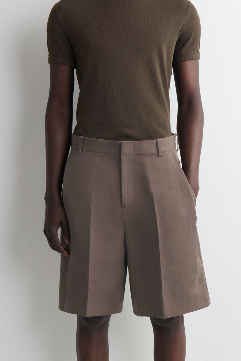 Modern tailoring codes define the COS menswear wardrobe. Tailored from linen-blend twill, these shorts are cut in a relaxed straight-leg shape and pressed with sharp creases along each leg. Style them as a suit with the matching blazer.