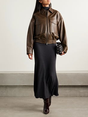 This piece is part of the ATELIER capsule; an exploration of the modern wardrobe, founded on the principles of luxury and exceptional design. For Autumn Winter 2024, the ATELIER designers offer a modernised take on the classic bomber jacket. This piece is cut in a rounded, oversized shape and features a press-stud stand collar and pockets at the front and side. Style it with the matching trousers. Tanned a rich chestnut tone, it's crafted from premium chrome-free nappa leather that is luxuriously soft to the touch. It's fully lined with a quilted interior for additional warmth. The zipped placket is bordered with tonal topstitching, while the ribbed leather hem is partly concealed by a double-layered back for a clean finish.