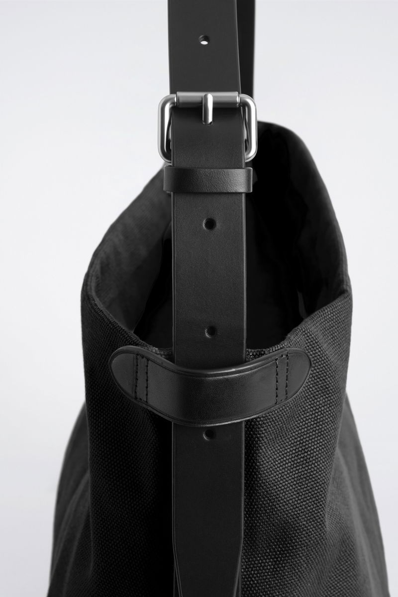 This modern messenger is a fusion of form and function. Crafted from cotton-canvas, it's trimmed with supple leather and designed with an adjustable crossbody strap, secure zip and silver-tone rivet detailing.