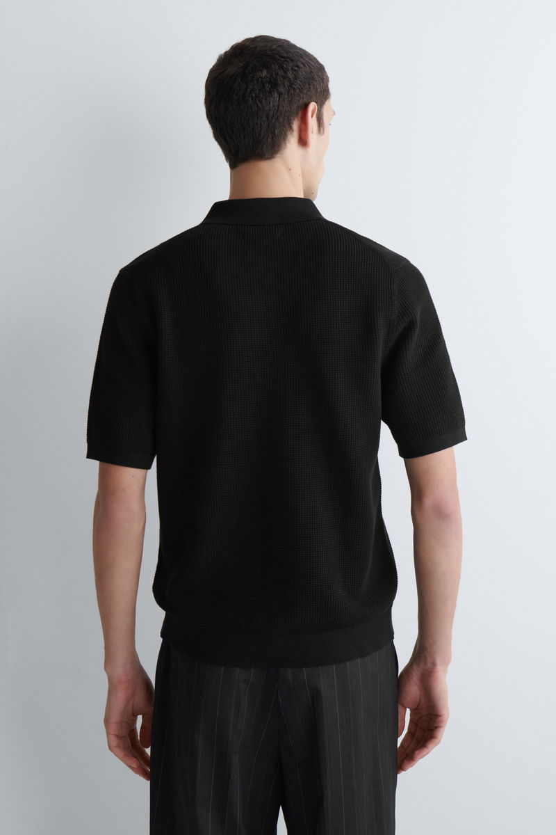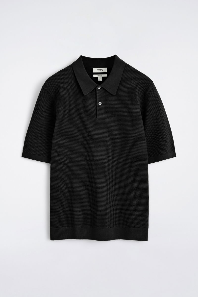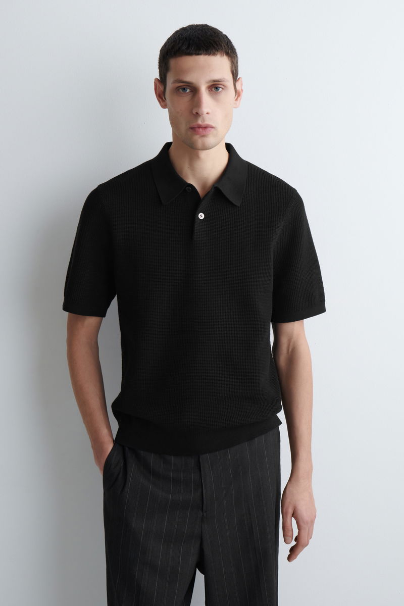 This modern polo shirt is made from soft cotton in a micro waffle knit that lends subtle texture.