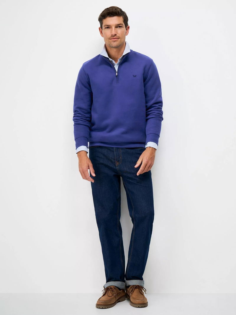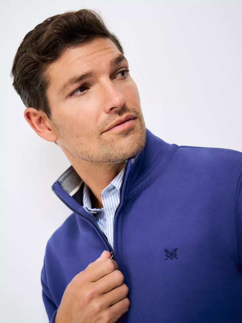 Cotton Blend Half-Zip Sweatshirt, Royal Blue