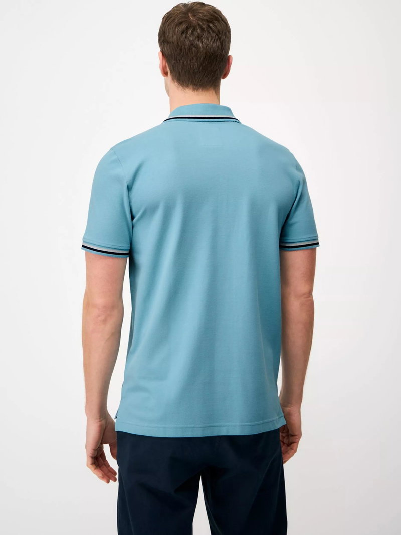 Cotton Regular Fit Marl Tipped Pique Polo Shirt, Bright Blue