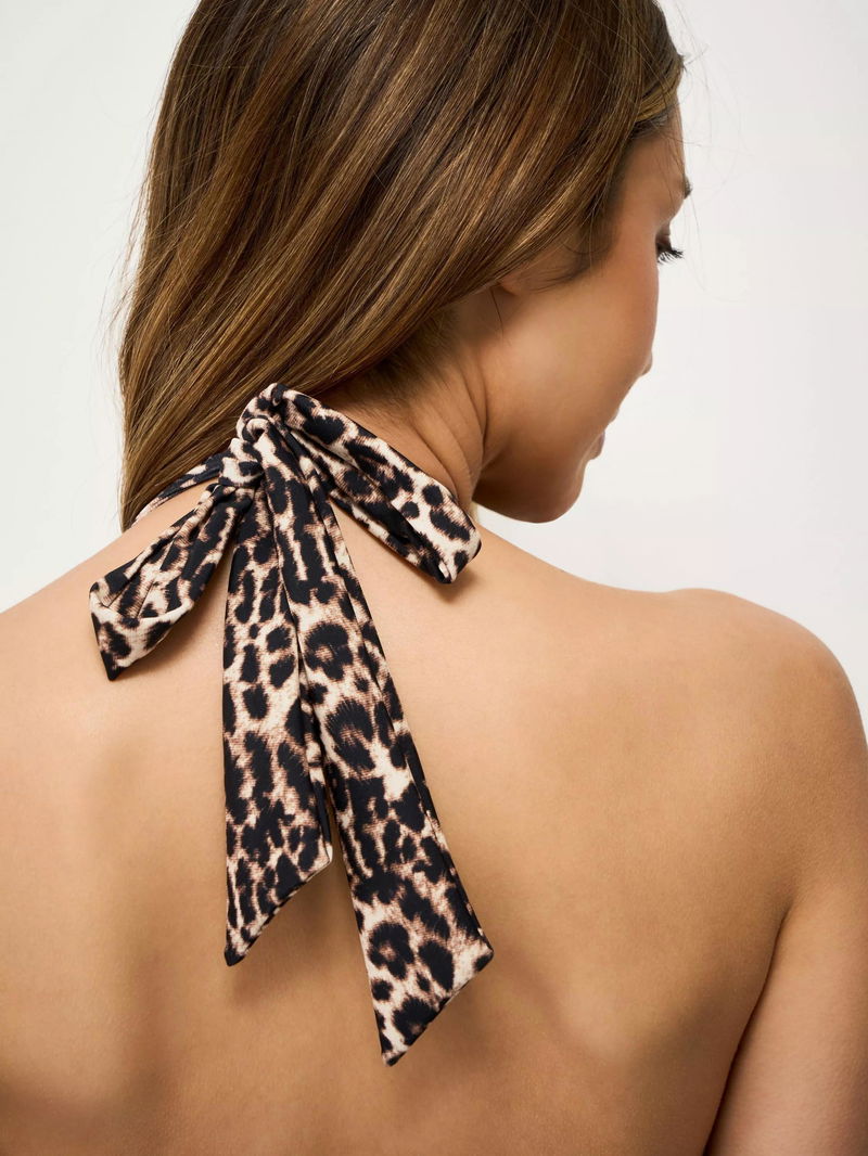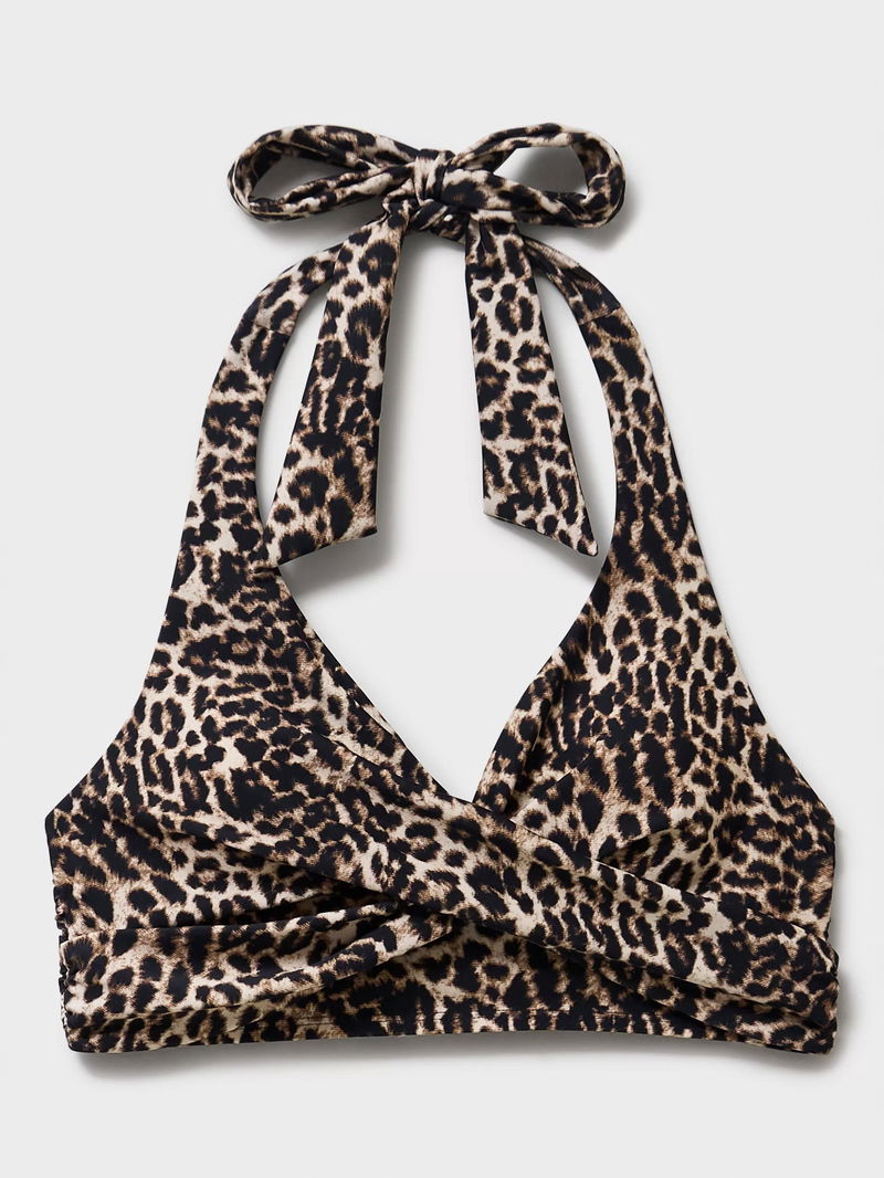 Cross Over Leopard Print Bikini Top, Bronze
