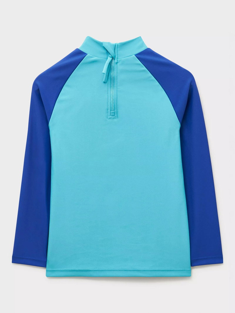 Kids' Colourblock Rash Long Sleeve Swim Vest, Turquoise/Blue