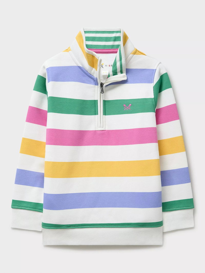 Kids' Stripe Half Zip Sweatshirt, Pastel Pink
