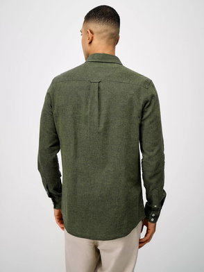 Linen-Cotton Micro Stripe Long Sleeve Shirt, Light Blue