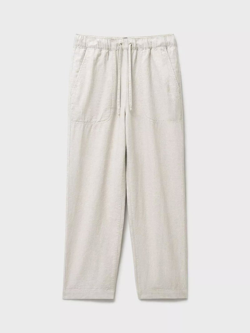 Made with at least 50% linen. Linen is made from the fibres of the flax plant. Flax is resilient and can grow in poor soil, using less water than cotton to produce.'