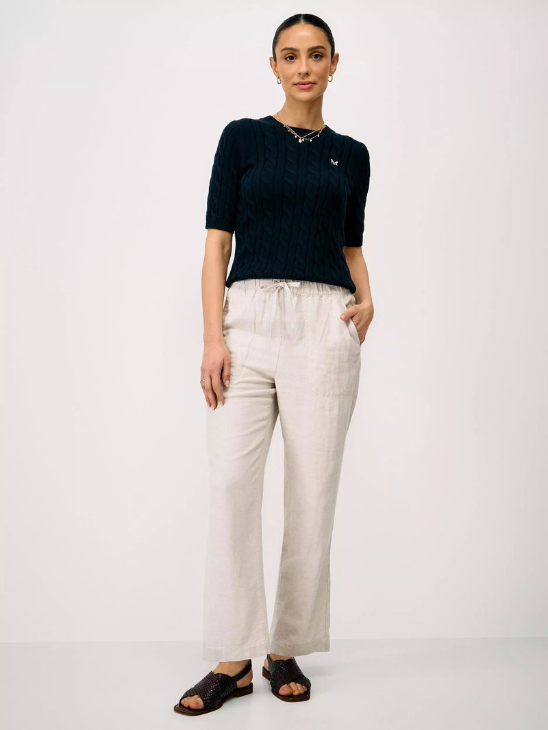 Designed in with a tapered leg for a cleaner, slimmer fit, these linen-rich trousers come complete with an elasticated waistband with drawstring detailing, too. Crew Clothing have added pockets and iconic crossed oars can be found neatly embroidered on the reverse. Tuck in a tee and wear all season-long.