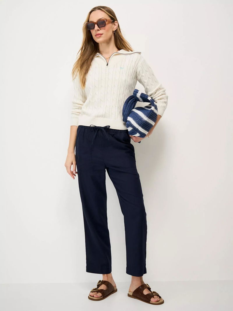 Made with at least 50% linen. Linen is made from the fibres of the flax plant. Flax is resilient and can grow in poor soil, using less water than cotton to produce.'