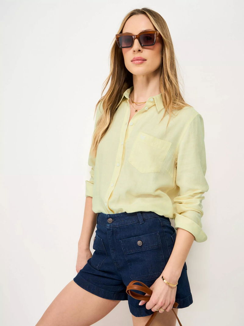 A relaxed-fit shirt, crafted in a beautifully soft linen and viscose mix. With long sleeves, a patch pocket, and a curved hem.