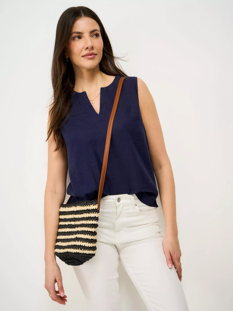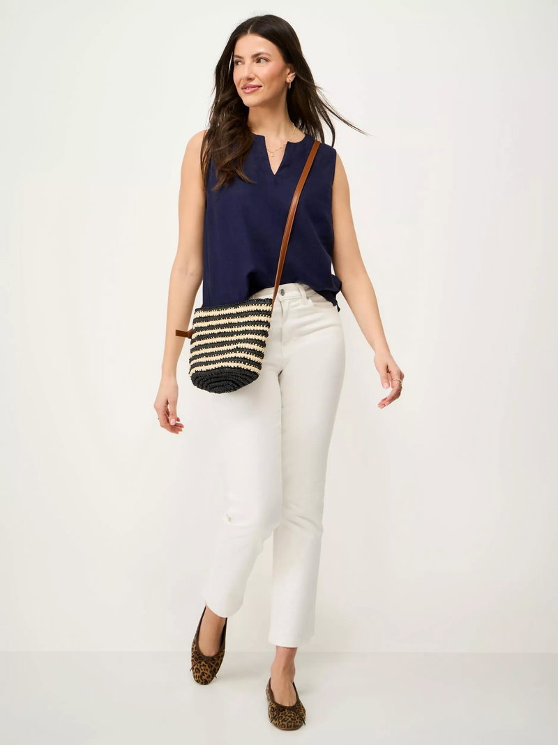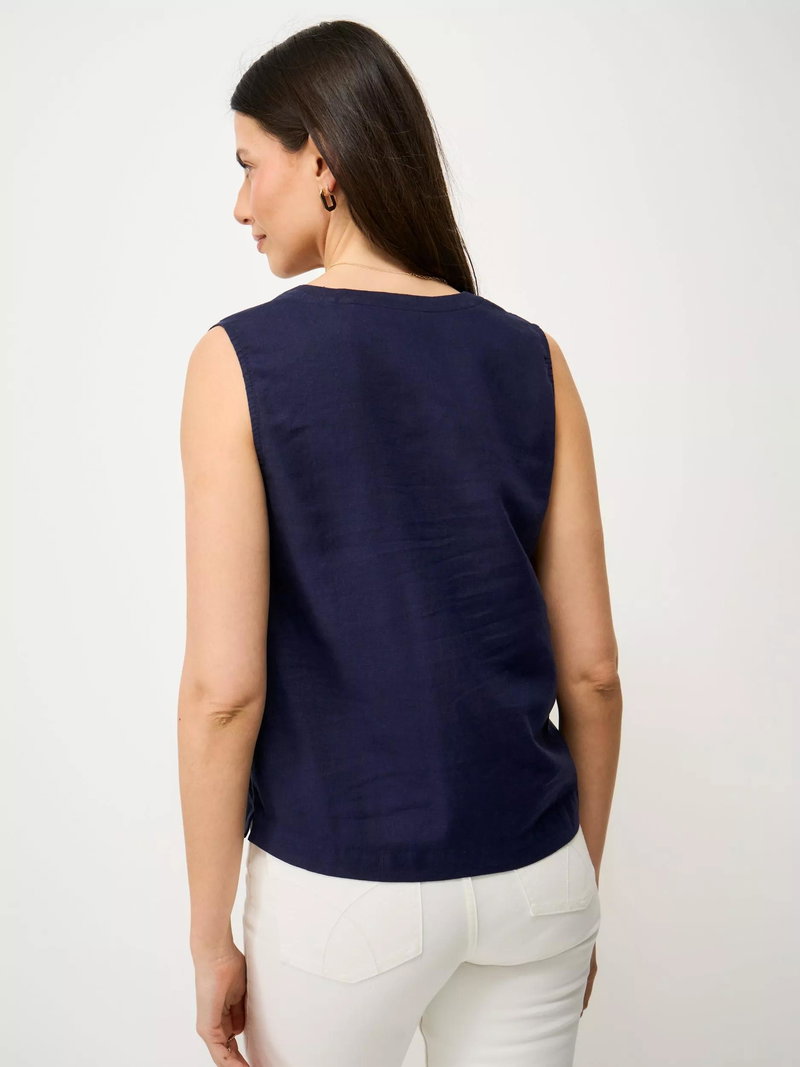 The Shelley woven top, made in a soft blend of linen and viscose. This elevated essential is styled in a relaxed fit through the body for a flattering look. The notched neckline detail completes this sleeveless style. Your new summer go-to.